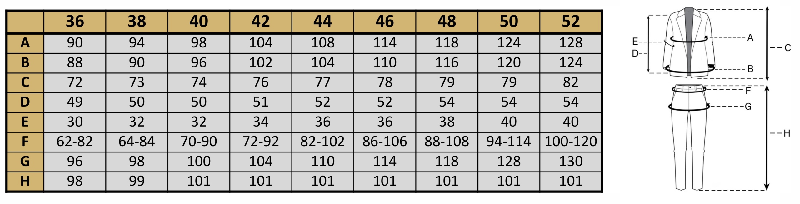 Вироби вимірюються впритул, назовні, застібаються на гудзики (блискавку). Щоб підібрати найбільш підходящий розмір, виміряйте подібний одяг зі свого гардеробу і порівняйте його розміри з таблицею розмірів даного виробу. Розміри, наведені в таблиці, можуть відрізнятися від фактичних розмірів виробу на +/- 2 см. Модель на фото має зріст 164 см і носить 42 розмір.
