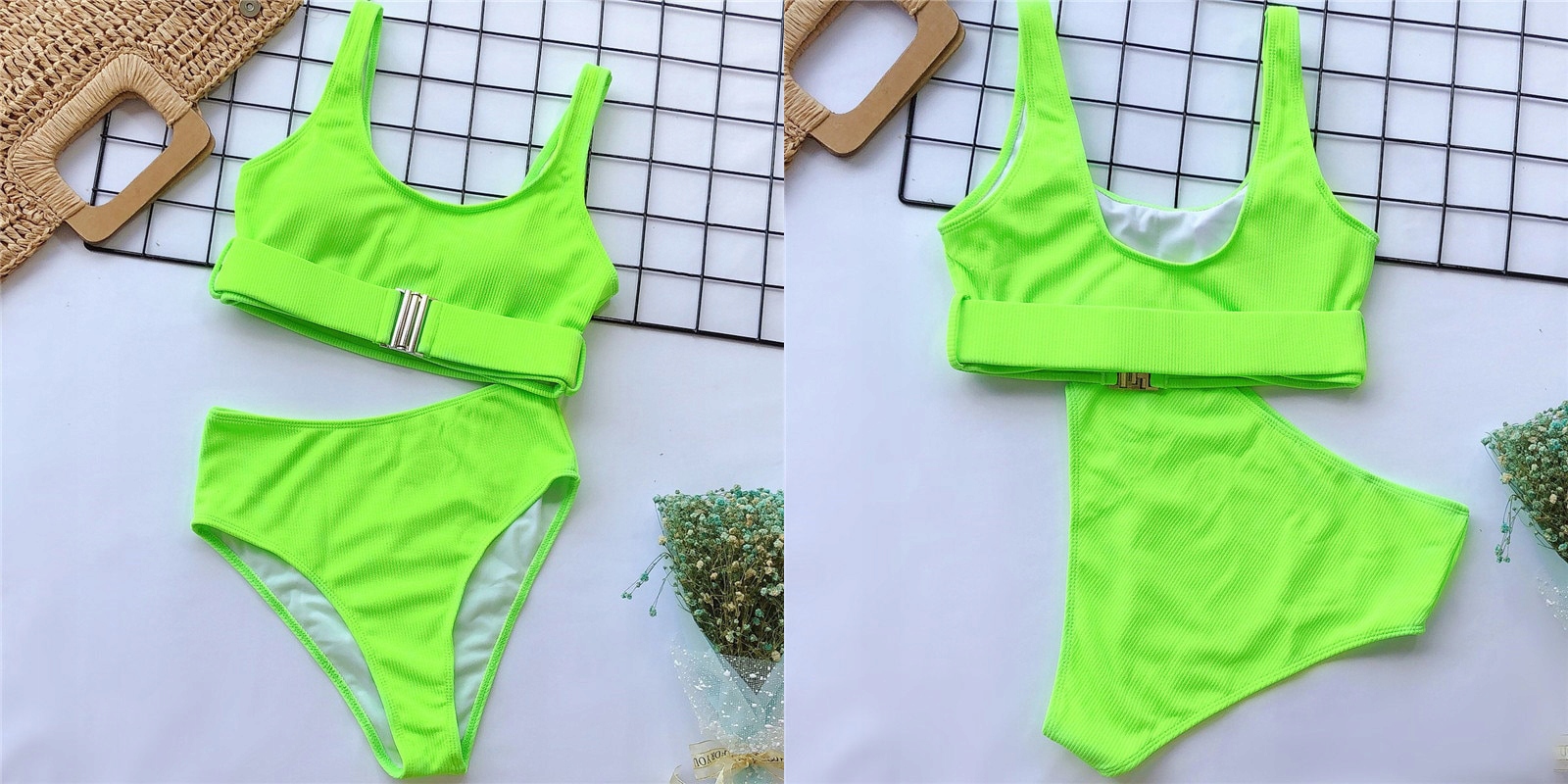 Жіночий і надзвичайно сексуальний набір купання, що складається з верхніх і високих трусиків. Двох частинок бікіні закінчив з найбільшою увагою до деталей. Верх прикрашений гнучким ременем, завершеним затискачем. Класичні трусики з високим станом значно покривають виступаючий животик.