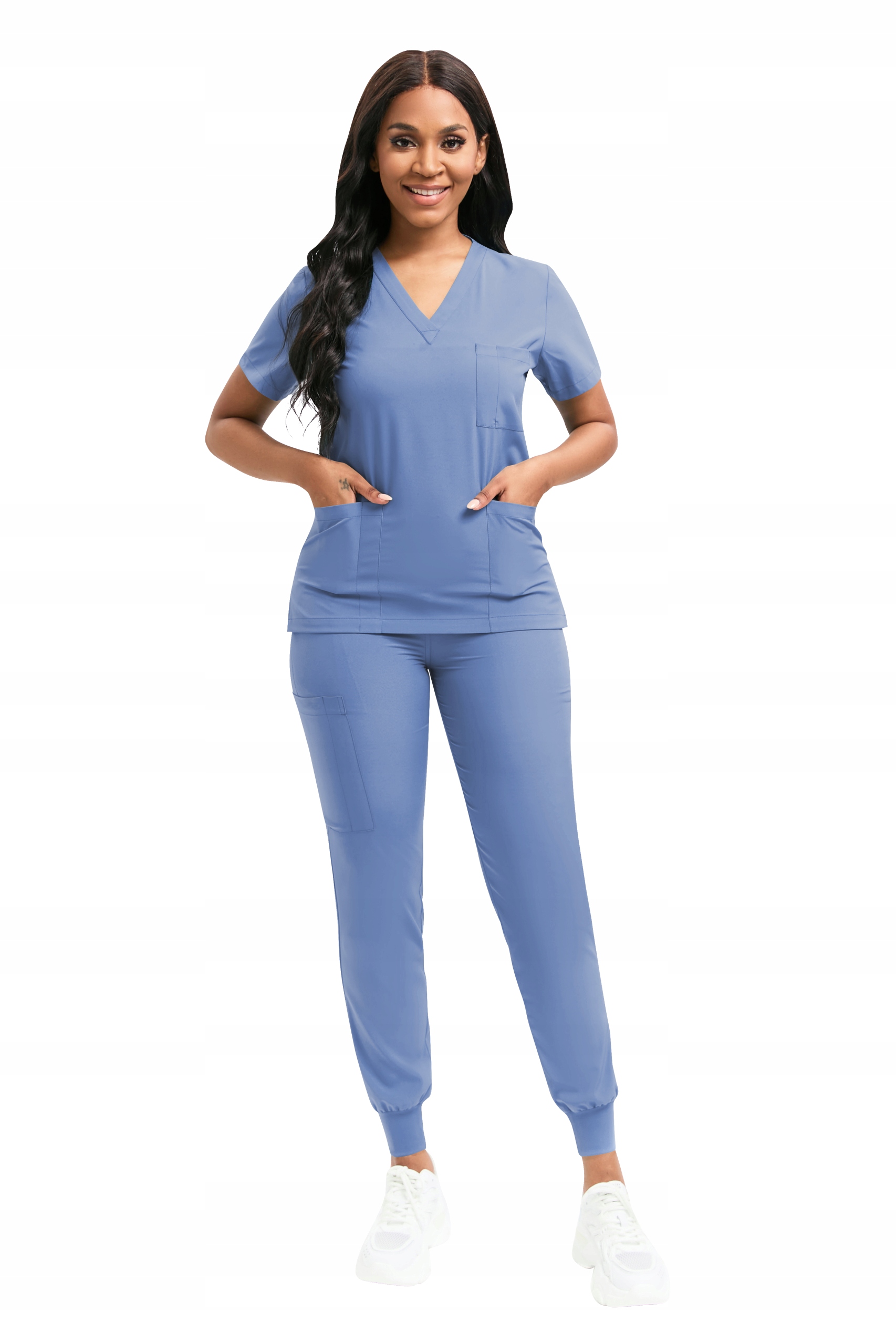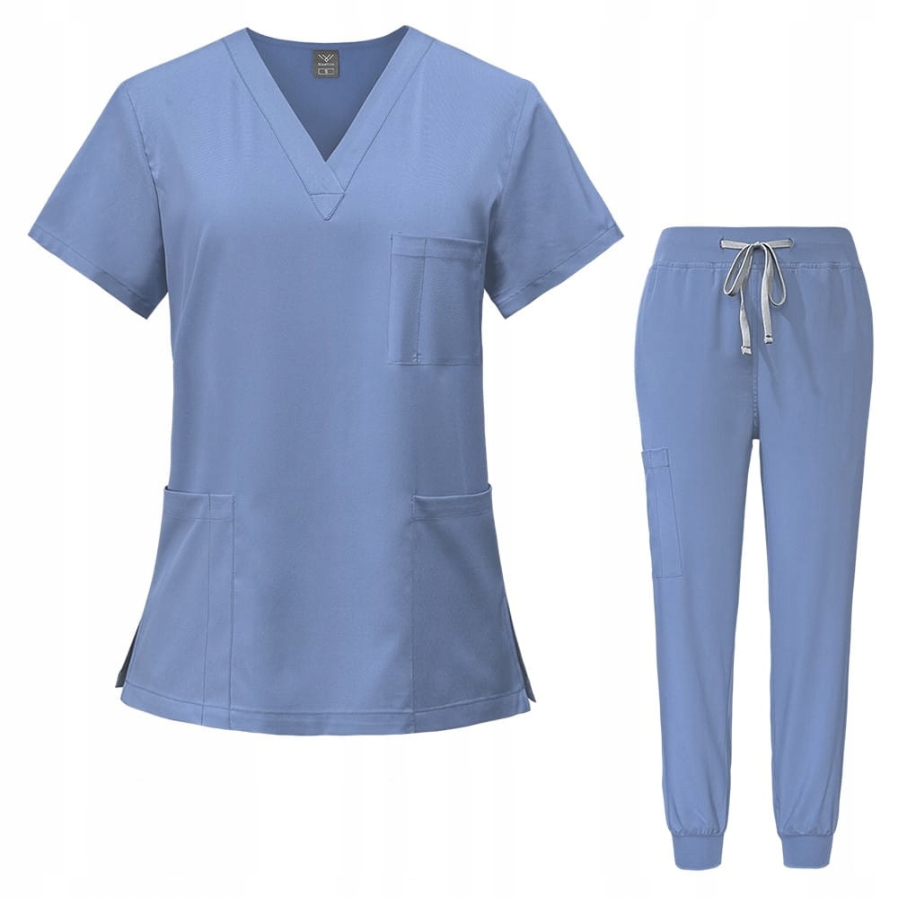 Аптечка складається зі зручної блузи та штанів. Медична блуза має дуже ретельно оброблений V-подібний виріз із делікатною прострочкою та практичними кишенями.