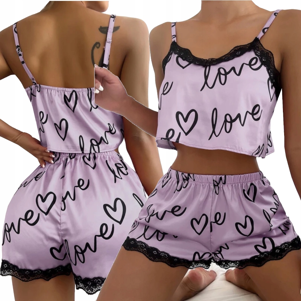 ❤️ Піжама виконана з увагою до деталей, футболка та шорти оздоблені ніжним чорним мереживом.
