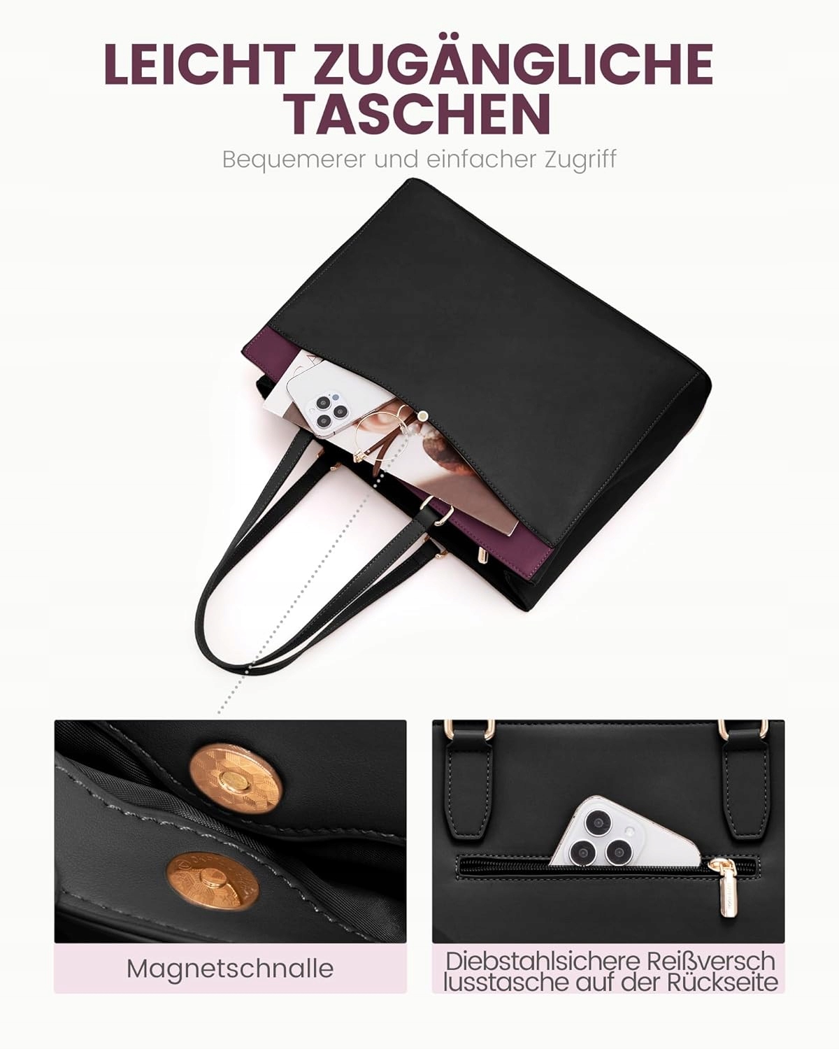 У цій жіночій сумці є власний підкладений розділ для ноутбуків, спеціально розроблений для захисту 15,6-дюймового ноутбука. Незалежно від того, чи йдеться про щоденну роботу чи ділові поїздки, ваш ноутбук знайде безпечне місце і буде оптимально захищений від пошкоджень.