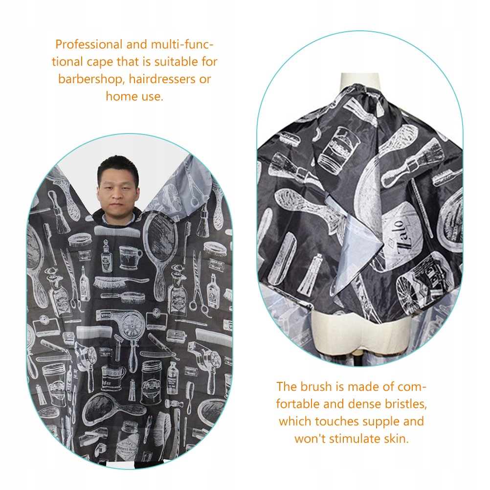 Ця перукарська накидка для стрижки пропонує чисте, легке та професійне підстригання, миття та фарбування волосся в будь-якому домі чи салоні. Перукарська накидка виготовлена з гнучкого і безпечного матеріалу, міцного для тривалого використання. Друкований дизайн, підходить як для чоловіків, так і для жінок.