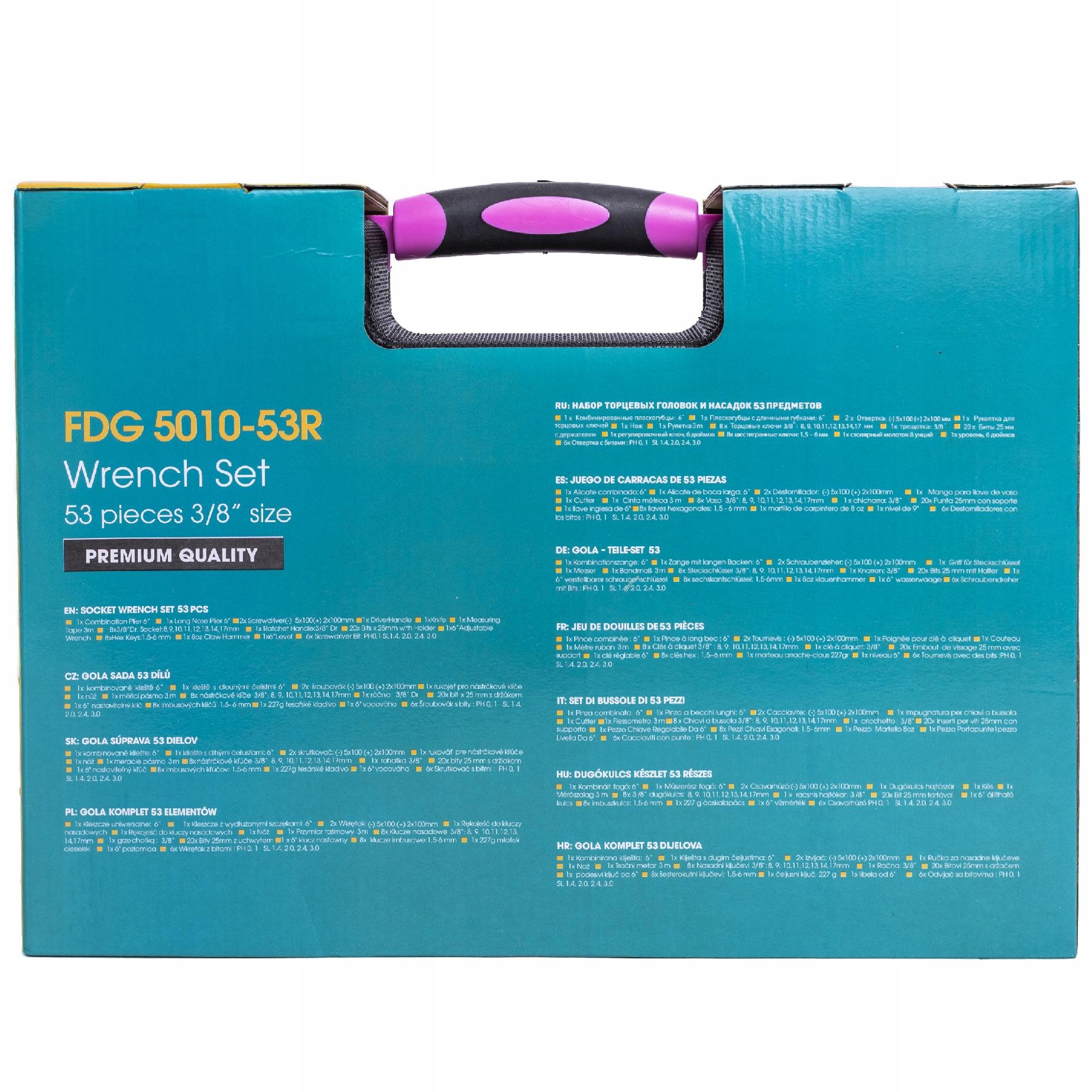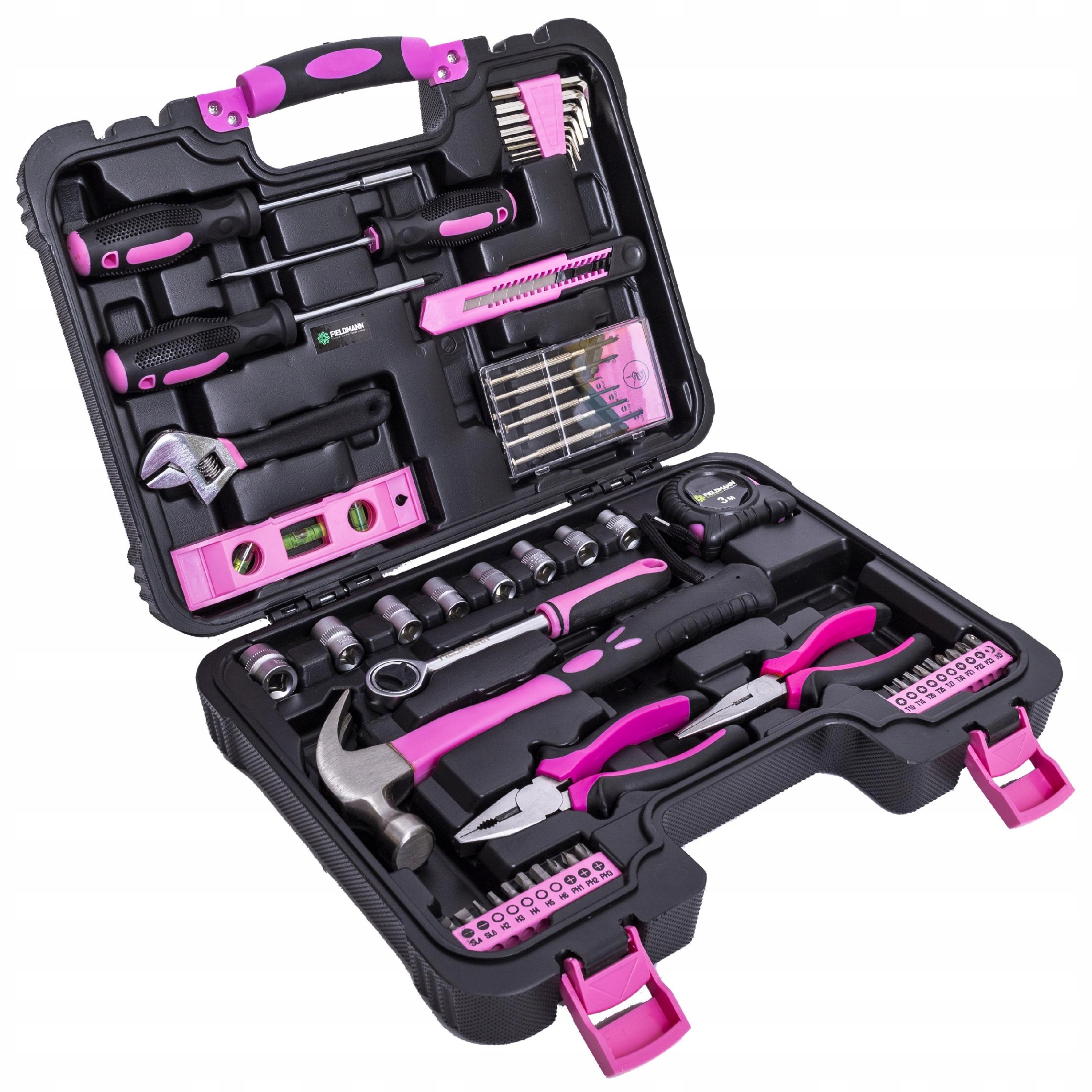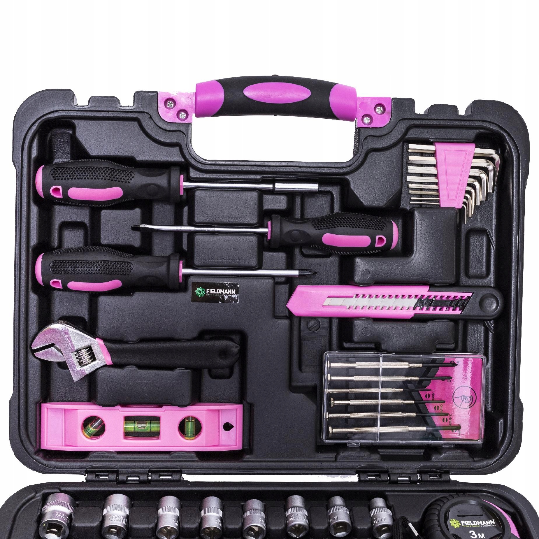 Рожевий набір інструментів Fieldmann FDG 5008-53R складається з 53 елементів, які стануть у пригоді кожному ентузіасту DIY. Набір включає, серед іншого: плоскогубці, викрутки, тріскачки та головки, насадки з ручкою та шестигранні ключі. І це ще не все! Цей набір порадує Вас своєю універсальністю та високою якістю виконання.