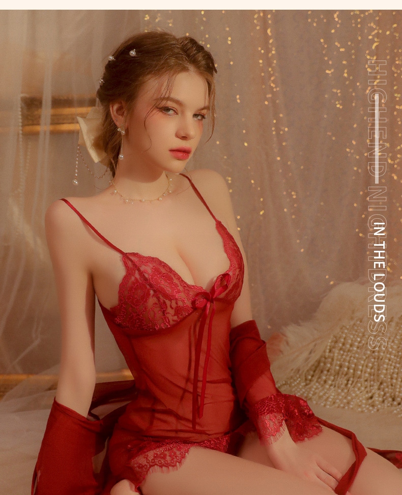 Суттєвий набір нижньої білизни, який поєднує делікатність мережива з романтичним стилем. Ідеальний вибір для вечорів, сповнених елегантності та спокусливої чарівності. Набір включає в себе сутичку, халат і ремінь - все в одному, щоб створити повний вигляд.