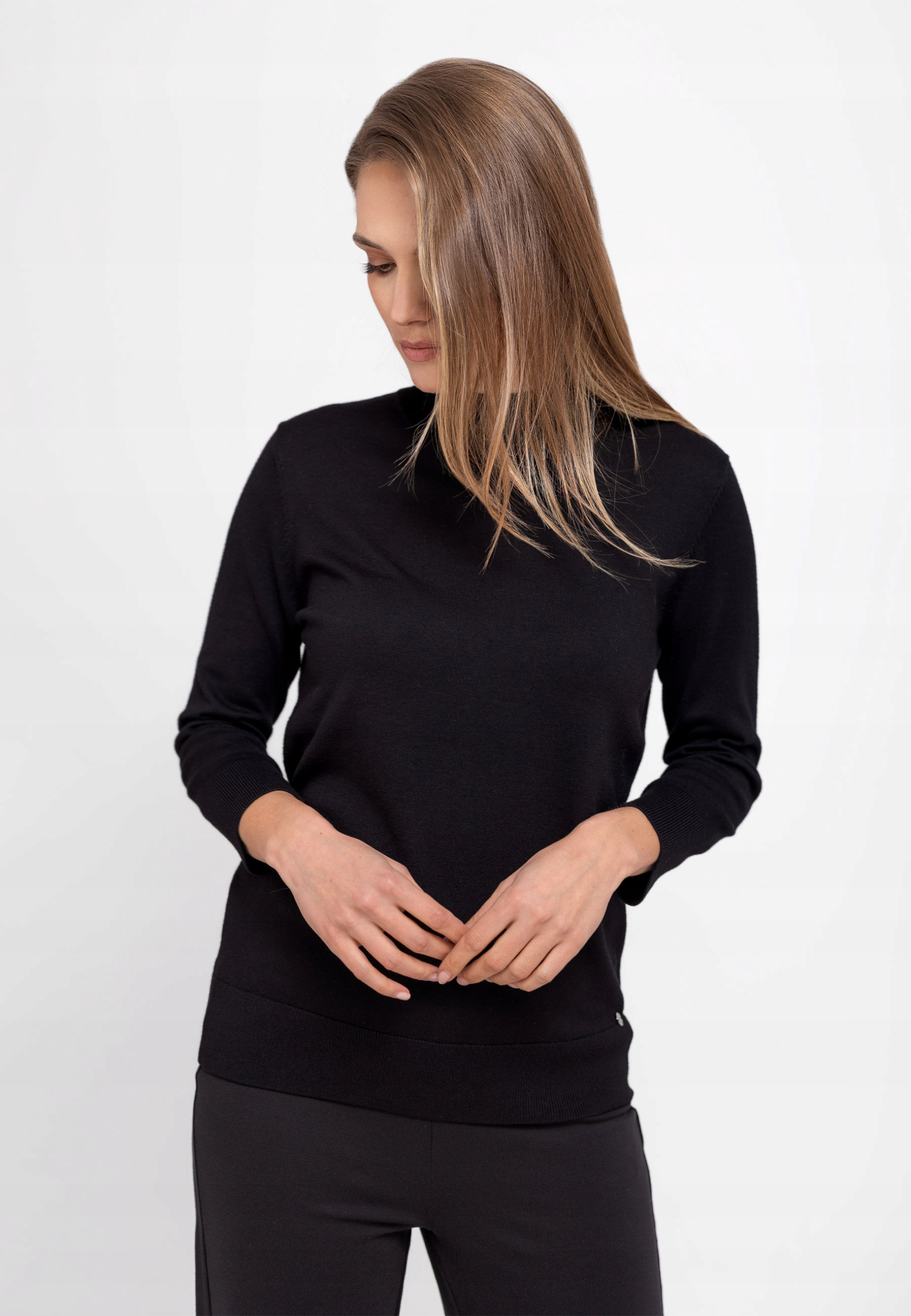 S-Tess-це регулярний светр, що підходить, з напівзростанням замість класичного декольте. Завдяки цьому він забезпечує додатковий захист від вітру та холоду. Це робить чорний светр - чудовий вибір для осінніх та зимових днів. Крім того, напівтуртленекс ідеально підходить для укладання . Отже, напівтрутів жінок s-tess можна носити соло, а також під курткою, бризним бризом або, наприклад, Джинсова куртка під час прохолодних днів.
