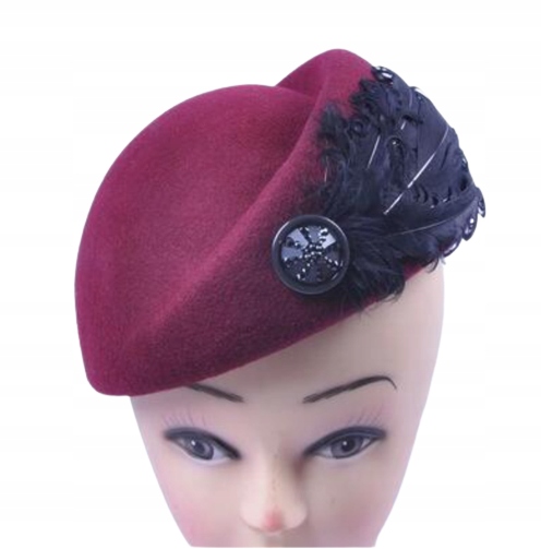 Жіночий осінній берет -міський капелюх з пір'ям модель 7