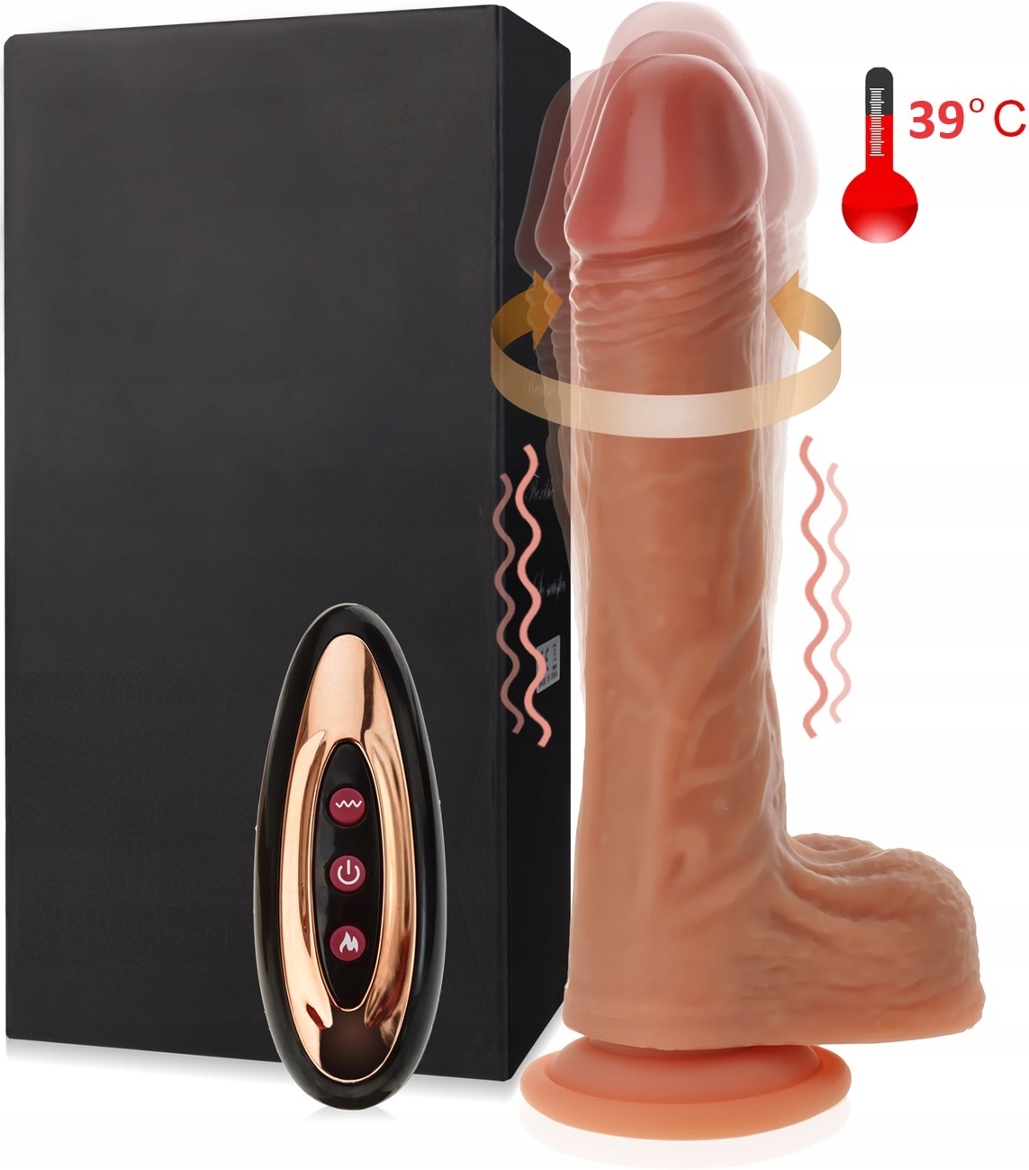 - Функції: 9 функцій вібрації, 3 функції руху обертання та ковзання, функція нагріву до 39 градусів за Цельсієм, міцна присоска, бездротовий пульт дистанційного керування, надзвичайно реалістичний