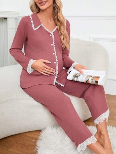 ЖІНОЧИЙ ПІЖАМНИЙ КОМПЛЕКТ ДЛЯ ВАГІТНОСТІ, РОЖЕВИЙ M ŁSA
