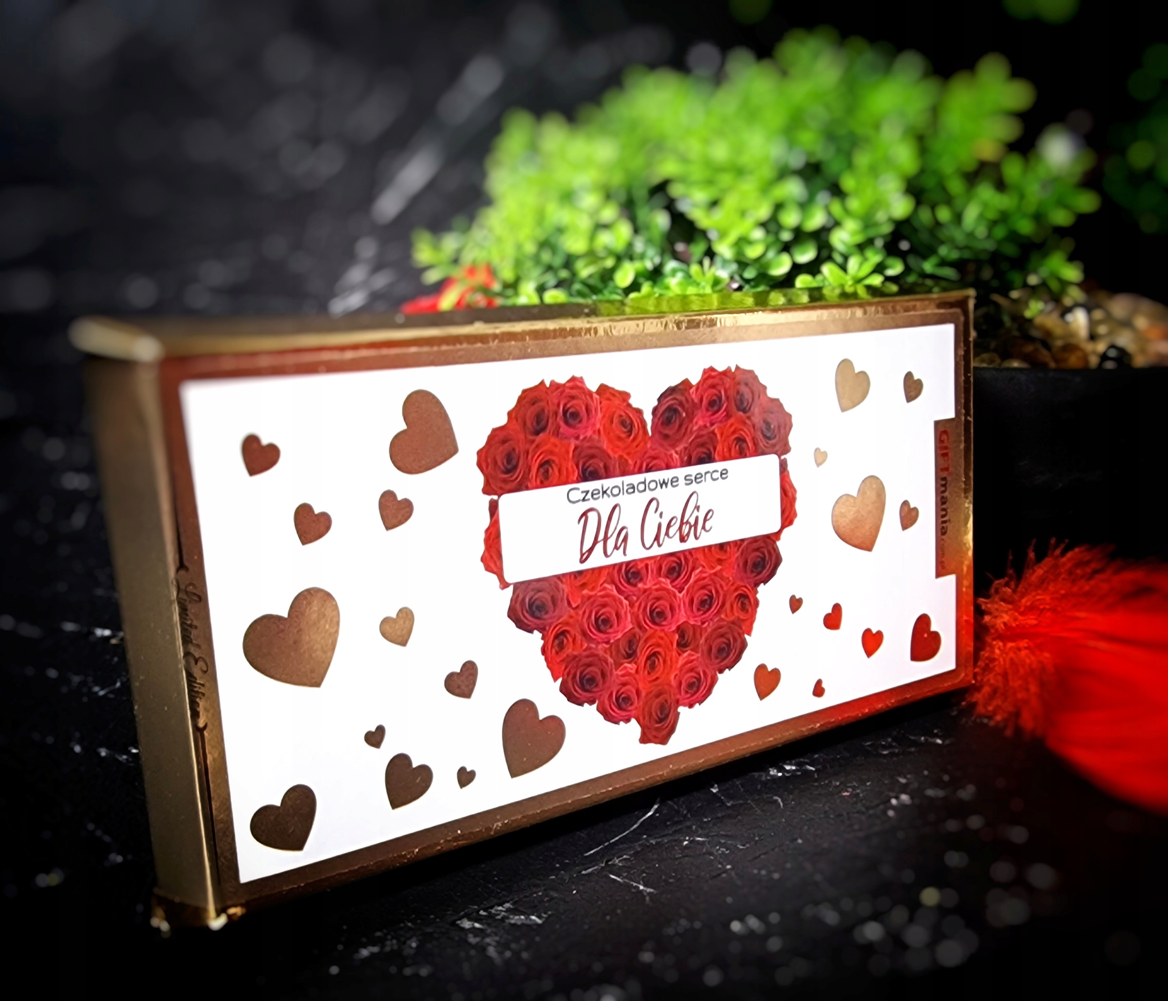 - Молочний шоколад з написом "Шоколадне серце для вас" - чим підсолодити :) Кожен, навіть найзатятіший противник солодощів (і але ми всі знаємо, що таких речей не буває :), у вас виникне бажання купити щось надзвичайно смачне та красиво упаковане