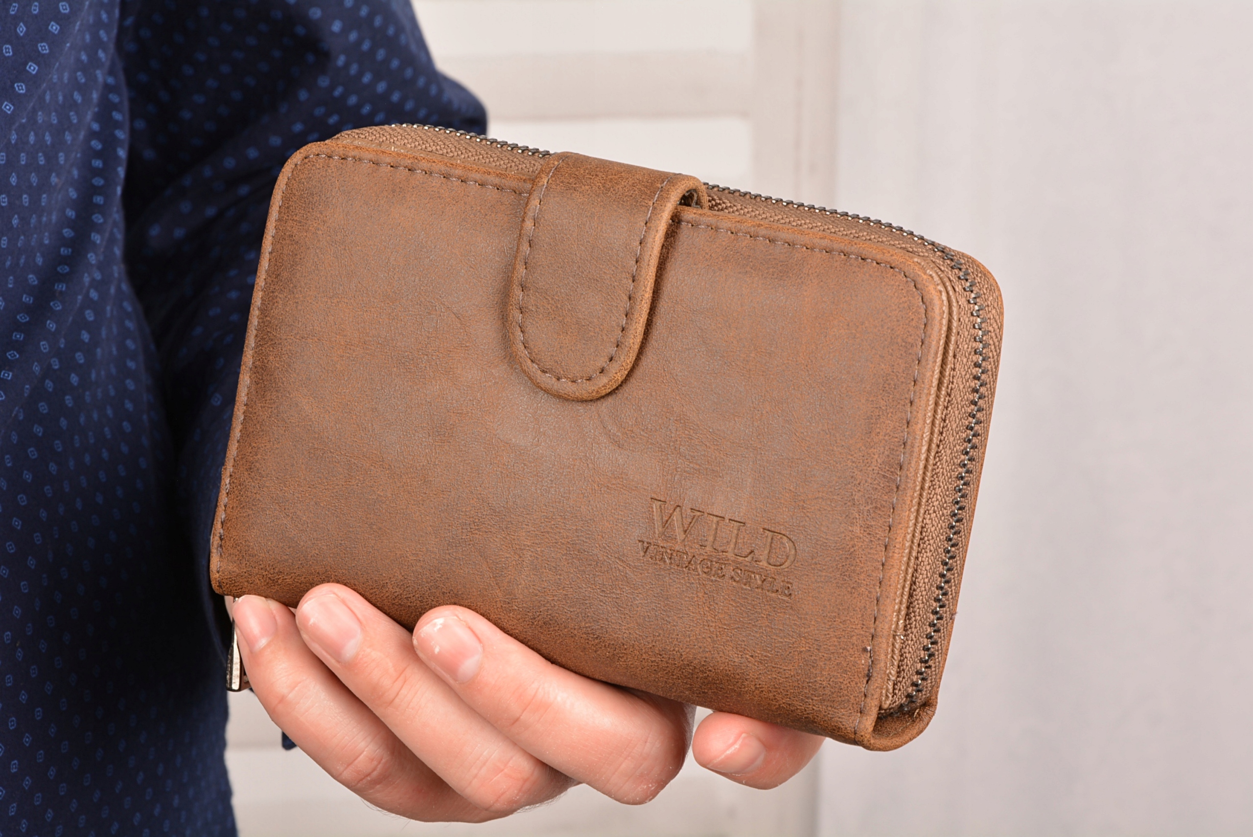 Гаманець на блискавці. Всередині є невелика кишеня, також застібається на блискавку. Бічний клапан застібається на застібку. Гаманець з екологічної шкіри найвищої якості. Дуже м'який і приємний на дотик.