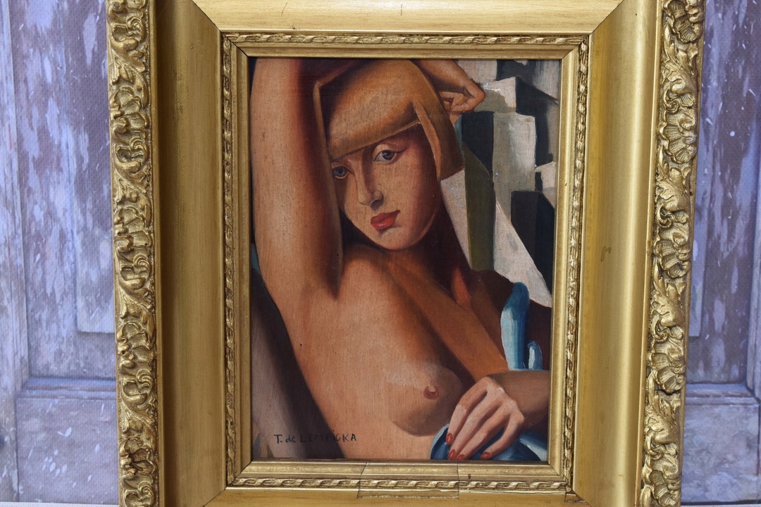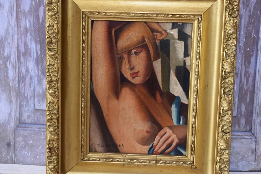 Жіночий портрет - Тамара Лемпіцька - Оголена - Стара картина - Золота рамка