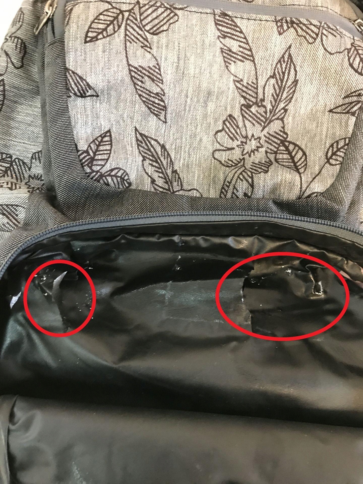 РОЗРИВИ МАТЕРІАЛУ, ВИДНІ НА ПОМІЧЕНОМУ ФОТО