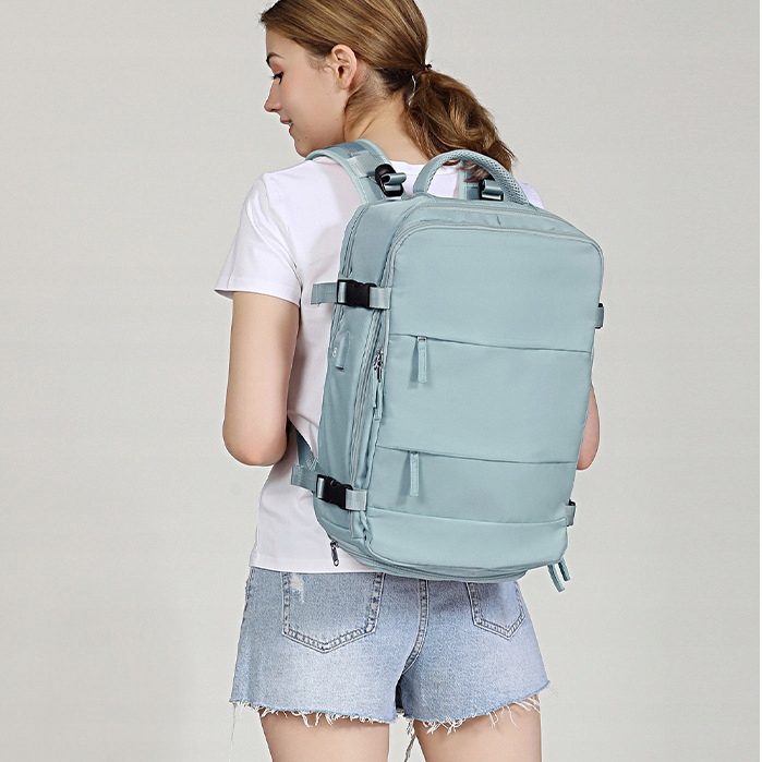 Рюкзак від Macwaveіз символом AL697, це виготовлений із міцного та водонепроникного матеріалу, який ефективно захищає вміст від намокання. Відрізняється дуже функціональним дизайном - завдяки можливості відкриття середнього відділення плоско, як валіза, пакувати речі в рюкзак набагато зручніше. Додатковою перевагою є окрема кишеня для взуття. У задньому відділенні рюкзака є м'яка кишеня для ноутбука 15,6". У просторому середньому відділенні є місце для упаковки одягу та кілька кишень для дрібниць і аксесуарів. Спереду рюкзака є велика водонепроникна кишеня для косметикаЗ правого боку рюкзака є зовнішній USB-роз'єм, завдяки якому не потрібно виймати павербанк з рюкзака, щоб зарядити телефон або інший портативний пристрій. Є дві додаткові кишені для рук. Основне відділення рюкзака захищене чотирма додатковими лямками з міцними пряжками, розташованими з боків рюкзака. еластичні губки, що підвищують комфорт під час носіння. На лямках є додаткова лямка для кращого розподілу ваги рюкзака при великому навантаженні. Ззаду єнепомітна кишеня на блискавці, де ви можете безпечно зберігати свій телефон або гаманець, і нейлоновий ремінь, завдяки якому ви можете одягнути рюкзак на ручку польотної сумки b>. У верхній частині рюкзака є міцна ручка для перенесення. З лівого боку рюкзака є еластичнакишеня для напою або парасольки. У нижній частині рюкзака є спеціальна вентильована кишеня для взуття. Модель Macwave AL697 особливо рекомендована жінкам завдяки унікальним кольорам. Місткість і функціональність рюкзака Mavwave неодмінно приверне увагу людей, які люблять подорожувати, і він відмінно підійде в якості ручної поклажі.