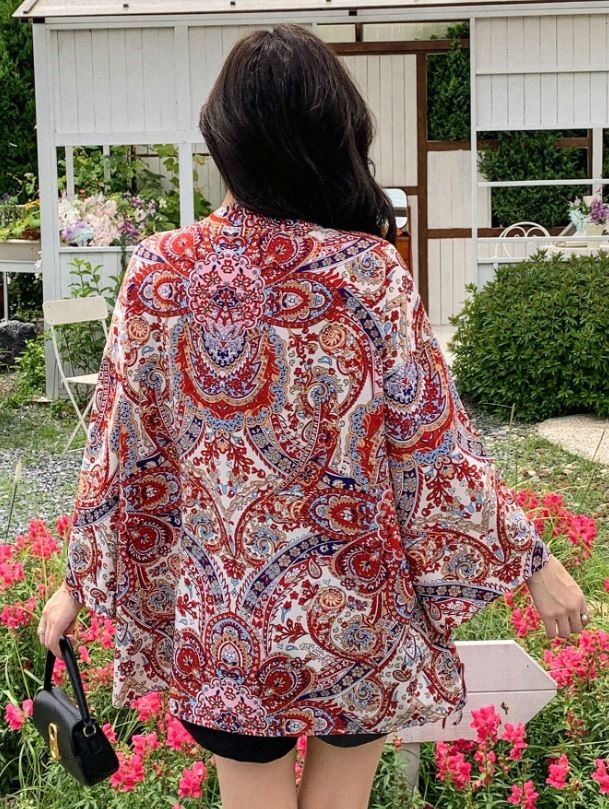 ЖІНОЧИЙ ШАЛФ SHEIN, БЕЖЕВО-ЧЕРВОНИЙ, ВЗІЗУНОК-МІКС, XL 873