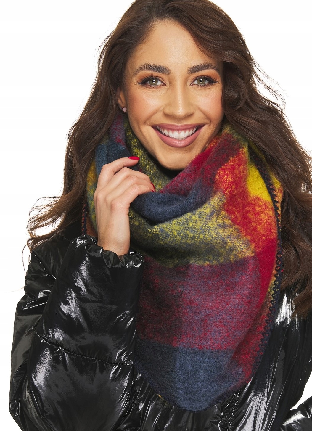 ЖІНОЧИЙ ШАРФ В КРАТИЧКУ, товсте, тепле, різнобарвне зимове пальто