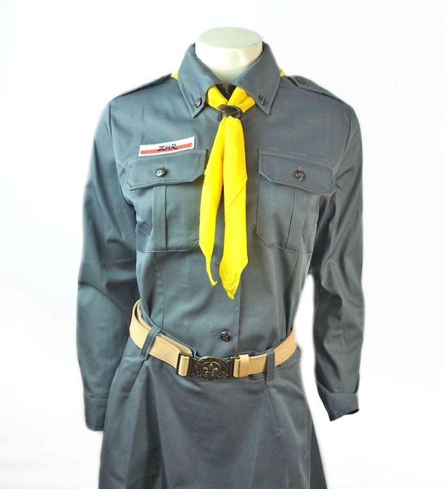 Найважливішою частиною форми скаута є сорочка. Для дівчинки підберемо сіру сорочку, а для хлопчика зелену - кольору хакі. На момент купівлі на форменній сорочці ZHR на грудях праворуч, трохи вище кишені, нашитий польський прапор з вишивкою абревіатури ZHR. Решту елементів уніформи ми обираємо самі, залежно від кольорів команди та встановлених правил, а деякі символи, наприклад скаутський хрест, надає нам керівник команди. Ви, звичайно, знайдете всі ці інші елементи уніформи на інших наших аукціонах. Цей аукціон стосується лише сорочки.