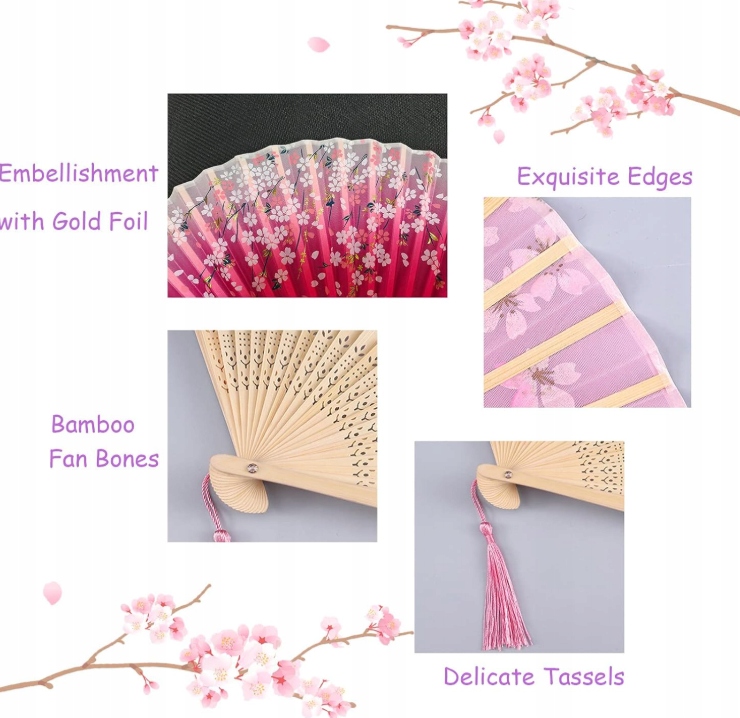 Традиційні китайські візерунки: квіти, листя, метелики чи зайчики — кожне віяло унікальне та виглядає красиво.