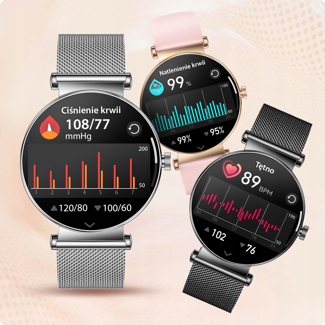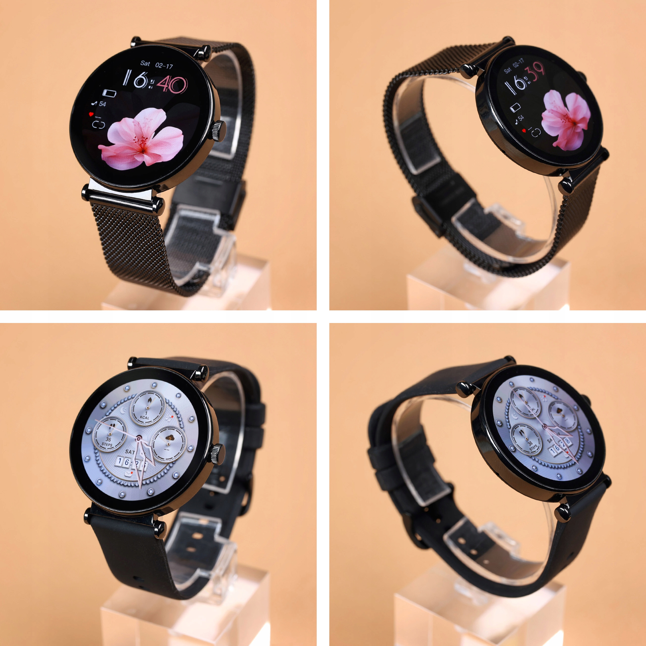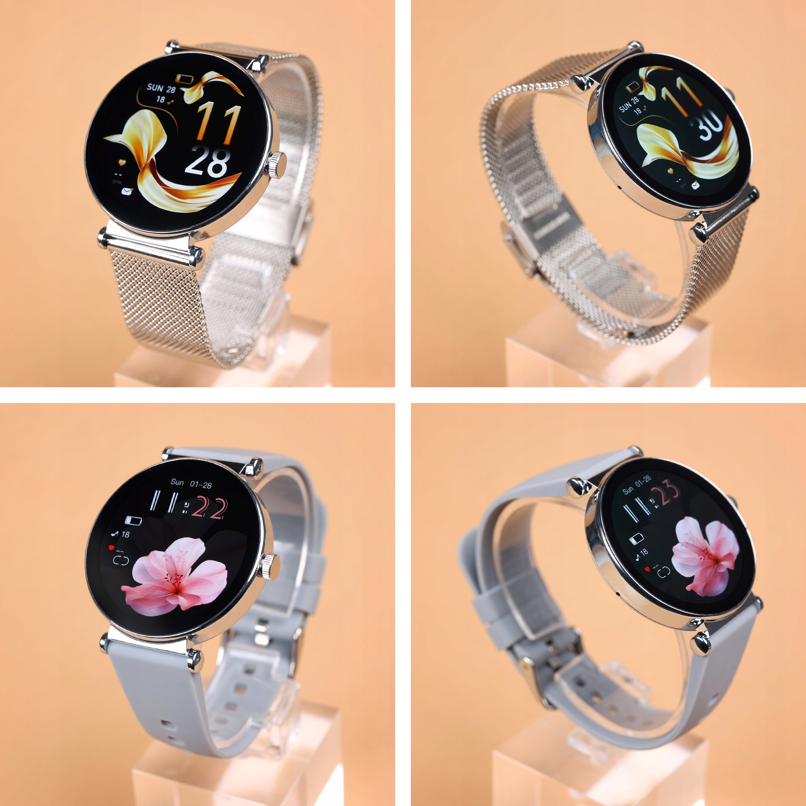 надзвичайно елегантний жіночий смарт -годинник на круглому конверті з товщиною лише 6,8 мм, , який поєднує в собі сучасний дизайн із вдосконаленими функціями. Хоча маленький, годинник оснащений низкою корисних функцій. 4 дисплей підтримує функцію завжди на дисплеї , тобто 24 -годину підсвічування екрану та прокидається до руху зап'ястя .