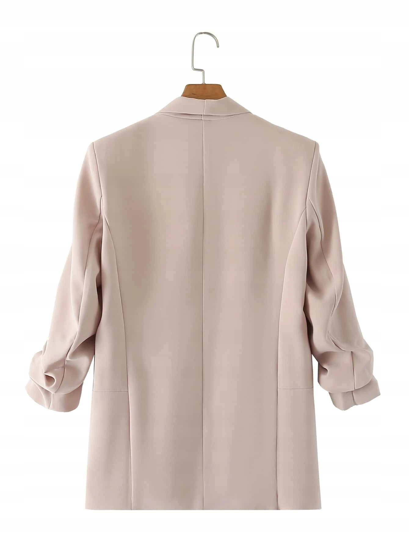 Ідеальне доповнення до стилю на роботу, університет чи вечірню прогулянку. Драпіровані рукави довжиною 3/4 додають оригінальний характер. Імітація кишень з боків з ефектними клапанами прикрашає куртку. Вільного крою, з підкладкою та м’якими підплечниками.