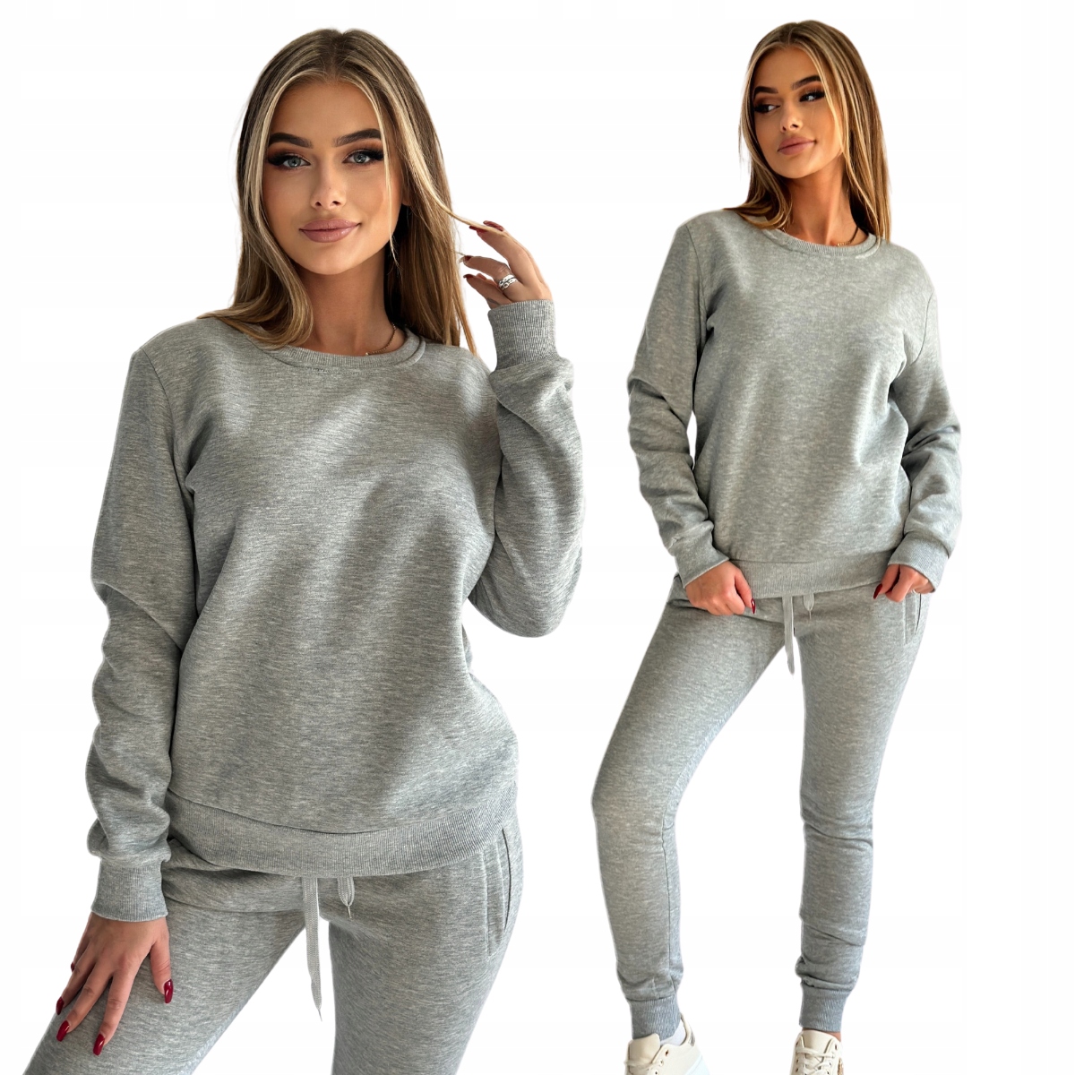 Цей стильний спортивний костюм сірого кольору — ідеальне повсякденне рішення, яке забезпечує комфорт і свободу. Виготовлений з високоякісних матеріалів, складається зі світшота з круглим вирізом і зручних штанів з манжетами внизу.
