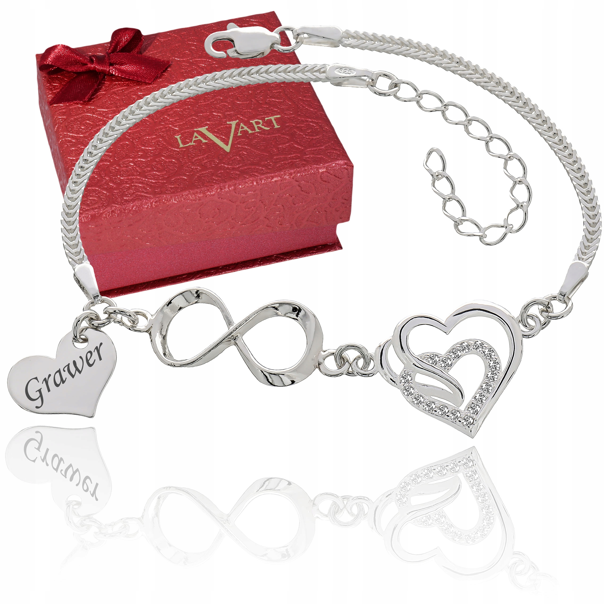 Срібний браслет із нескінченним серцем і кулоном у формі серця.