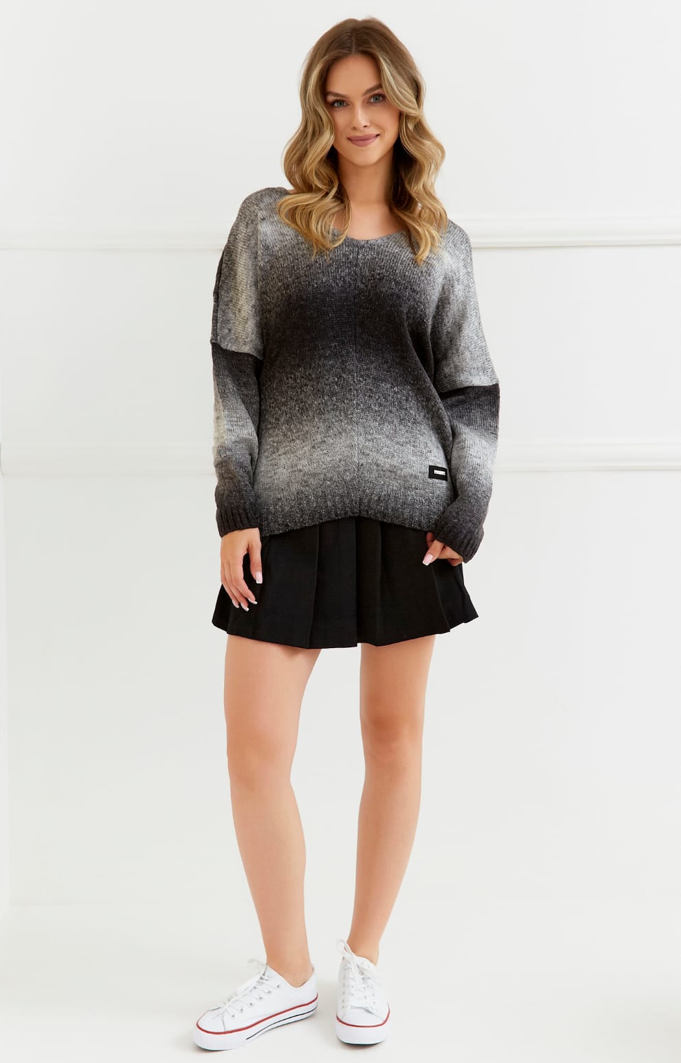 модний, светр з вільним вирізом, виготовленим з м'якого трикотажного одягу.