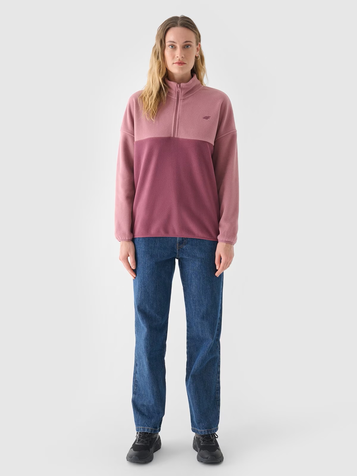 ЖІНОЧИЙ ТЕПЛИЙ ФЛІСОВИЙ СВІТШОТ 4F OVER SIZE З КОМІЕРОМ-СТІЙКОЮ ТЕМНО-РОЖЕВИЙ L