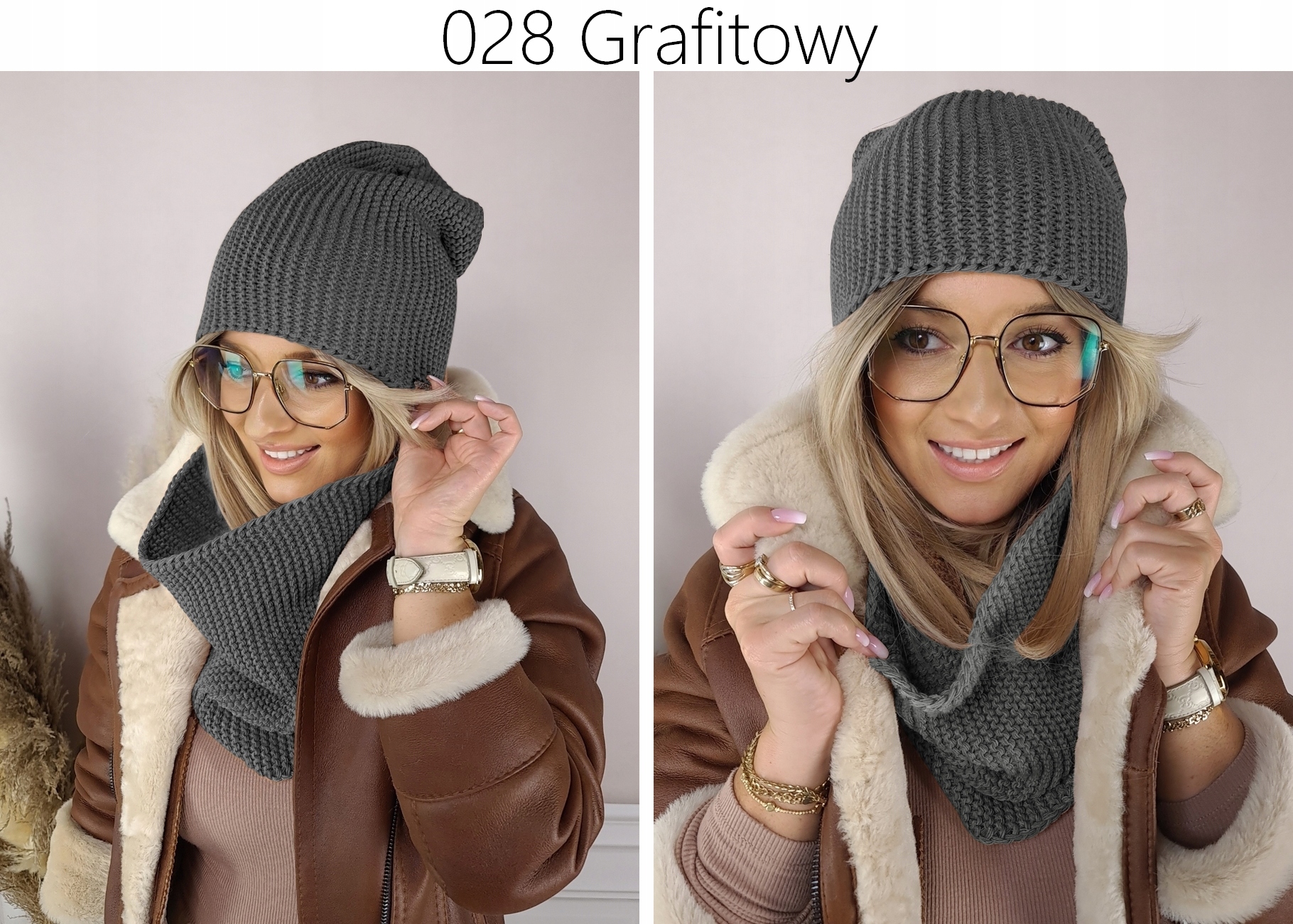 Універсальний лицьовий виріз з красивим плетінням ідеально підійде до будь-якої осінньої або морозної зимової укладки. Кепка злегка обвисла, прикрашена металевим логотипом бренду, а шарф одягається один раз і все красиво сидить. Дуже м’які та зручні у використанні!