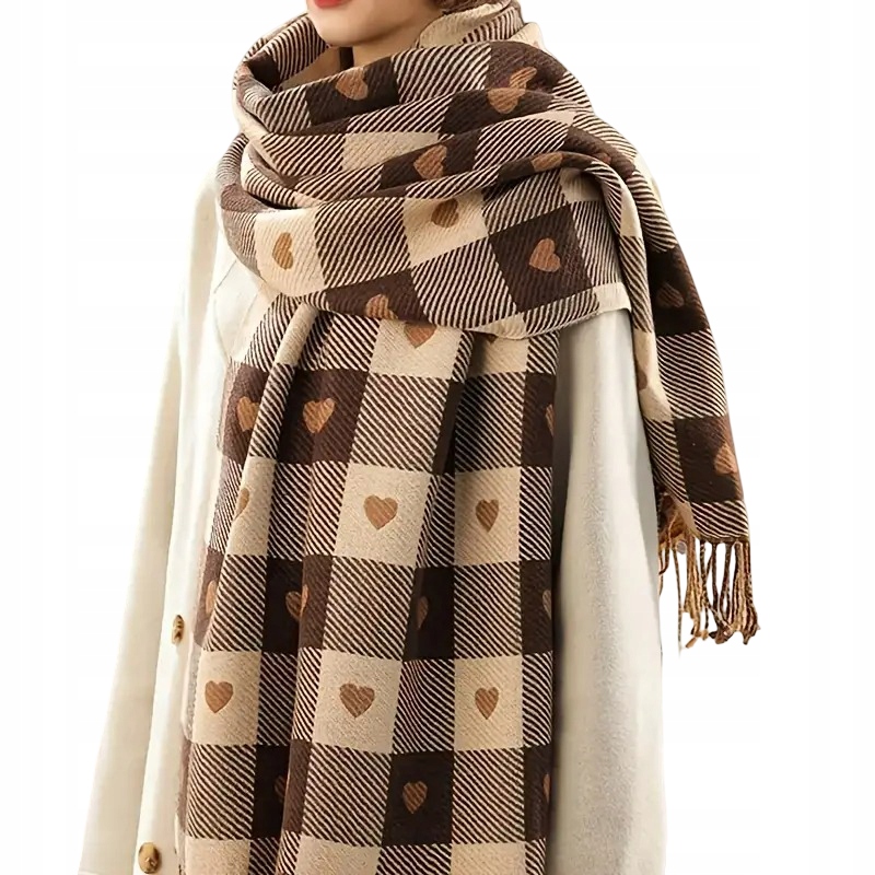Шарф в клітинку з мотивом серця - це поєднання класики і тонкого романтизму.