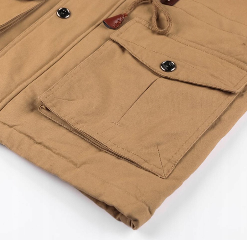 Комір: високий комір-стійка захищає шию від холоду та додає куртці військовий характер.