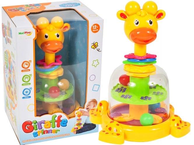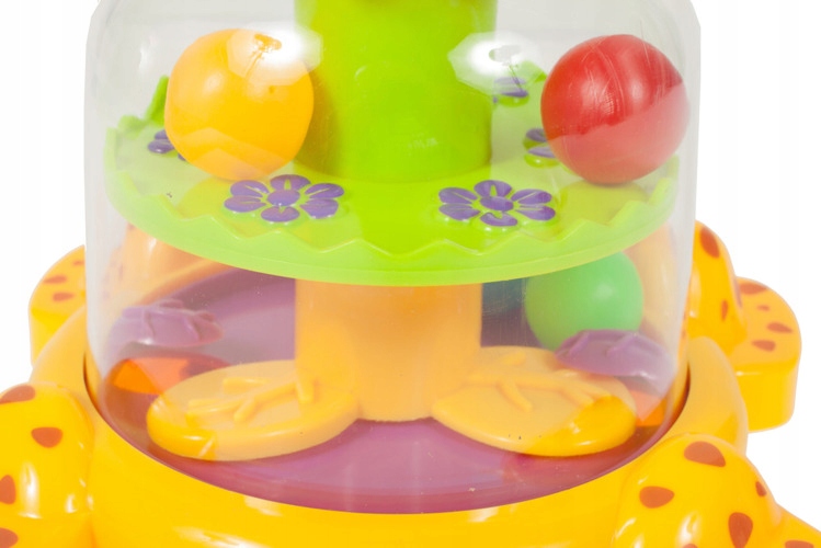Якщо натиснути на голову жирафа, колесо всередині обертається, а кульки злегка підстрибують.