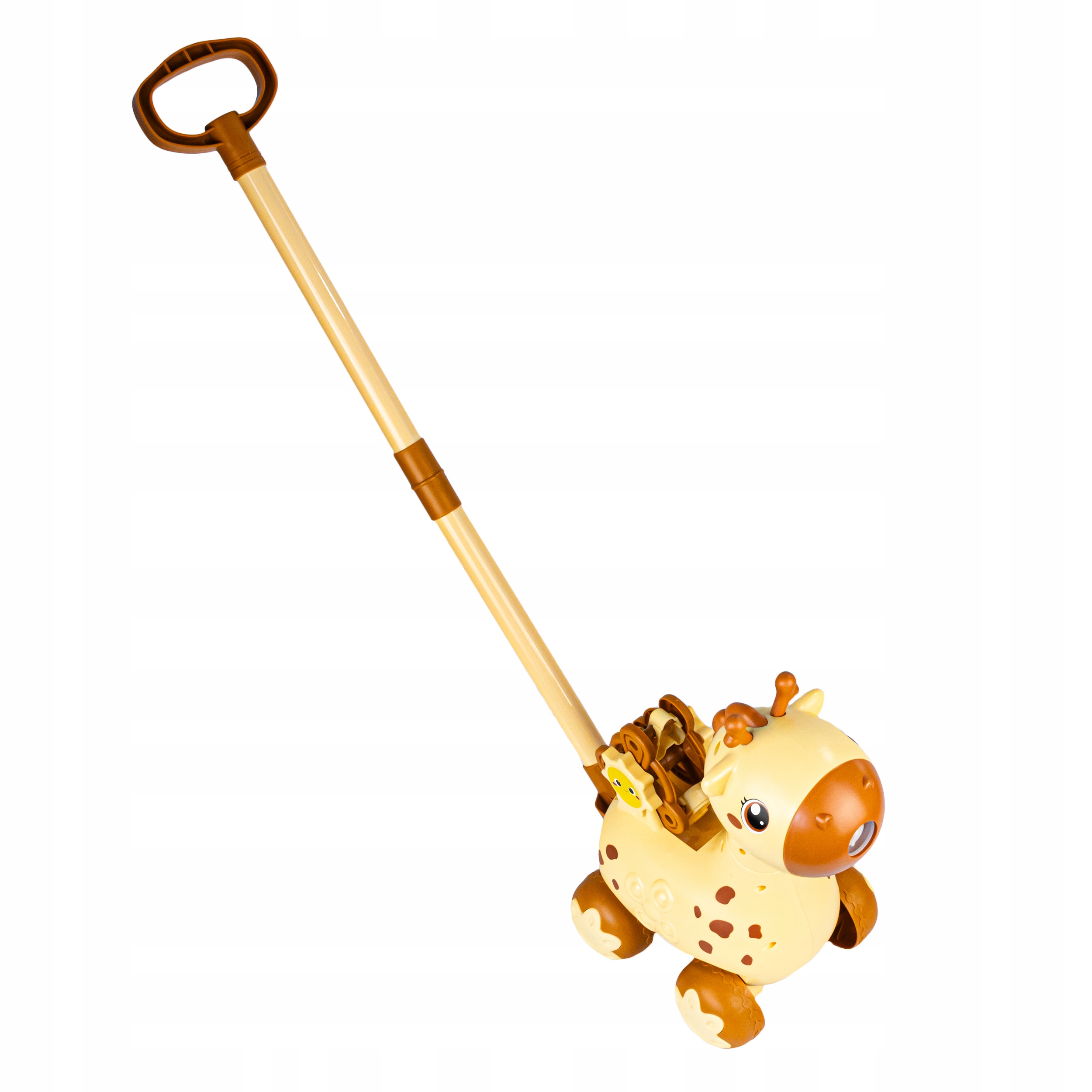 У комплект входить довга ручка для перенесення іграшки. Завдяки ергономічному дизайну та зручній ручці використовувати штовхач просто та приємно, а керувати дуже просто.