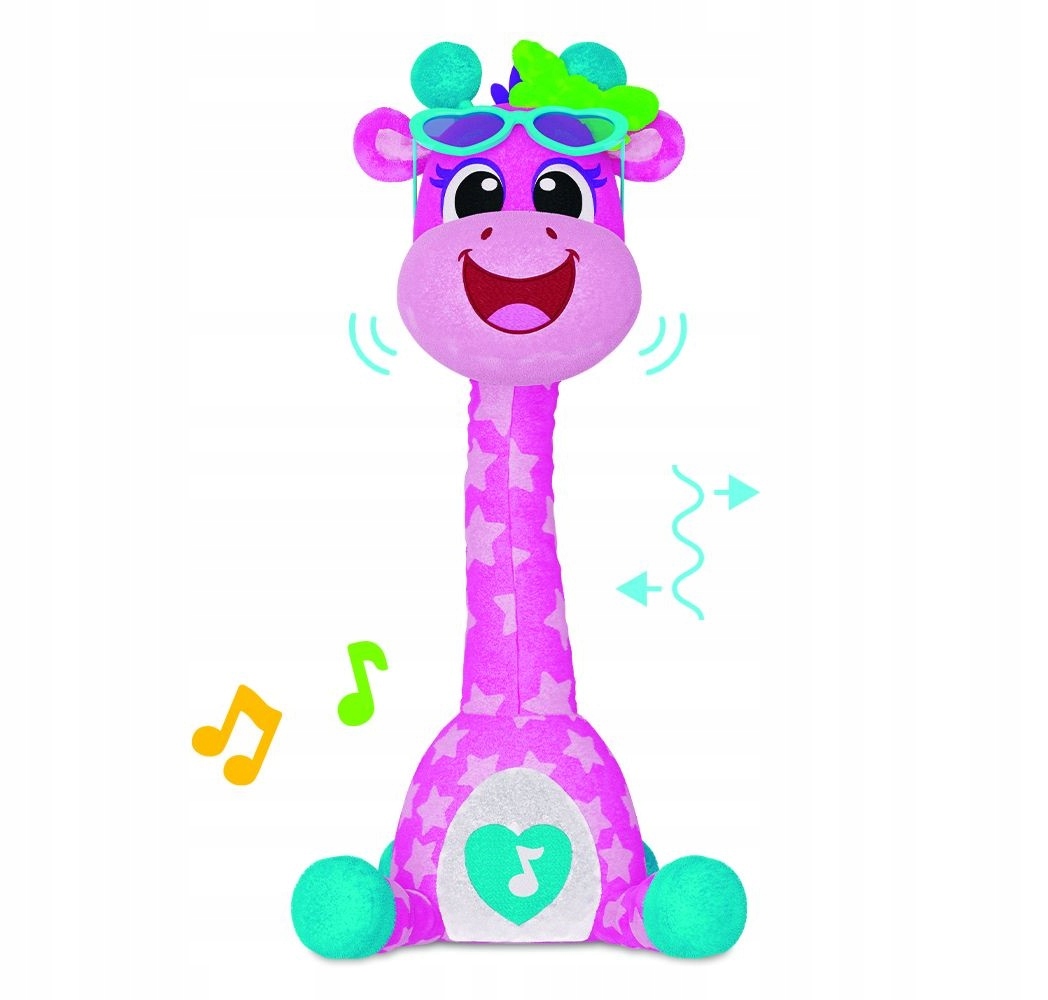 Ця енергійна тварина знає стільки ж у вигляді 12 різноманітних мелодій, під які він виконує кумедний танець, похитуючи шиєю в ритмі музики. Жираф оснащений кнопкою-зірочкою, що світиться, яка активує звуки та танці, додаючи додаткової радості.