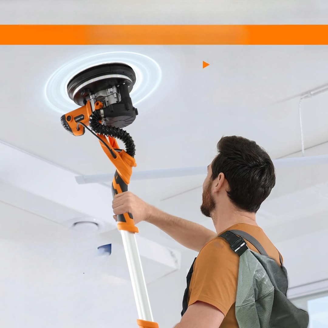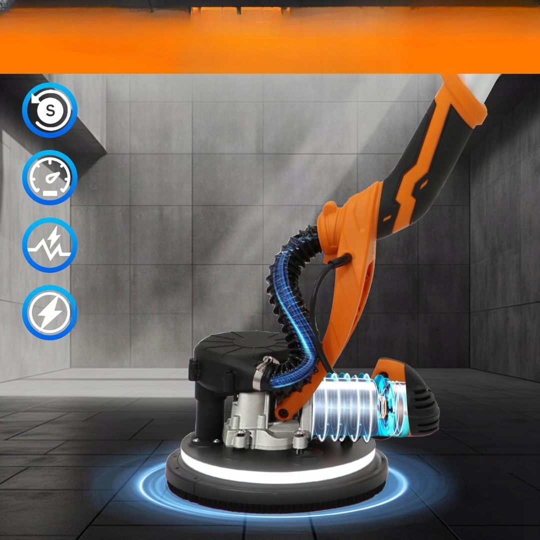 Gipson-card grinder with a vacuum cleaner has a rotary in the 360 ° abrasive disk, which allows even grinding, effectively Вирішення проблеми шліфування мертвих кутів та полегшення шліфування без необхідності змінювати напрямок.