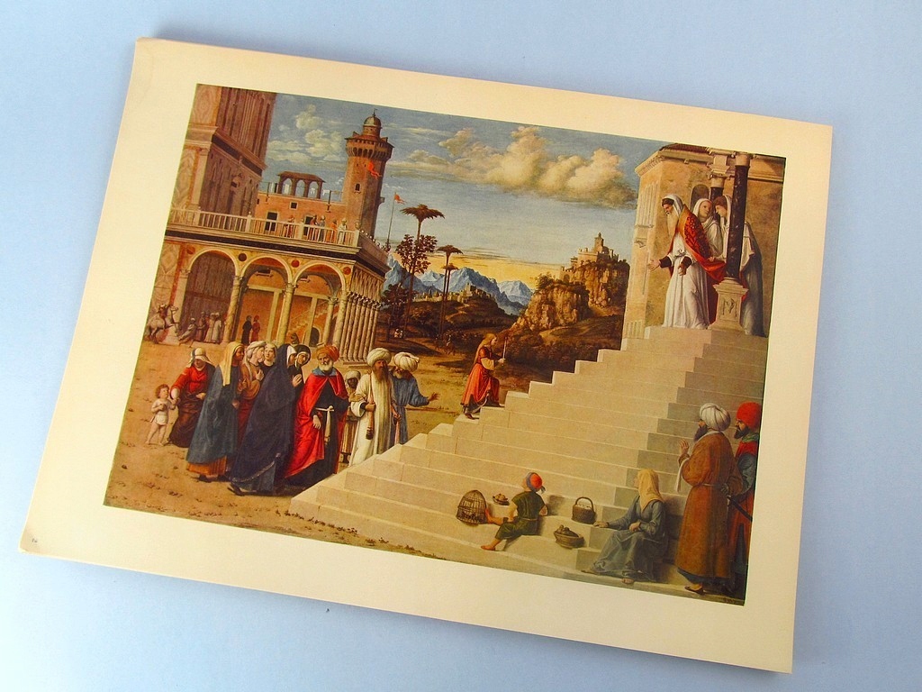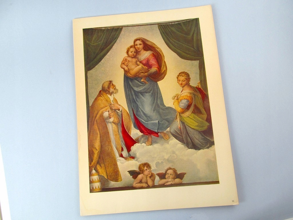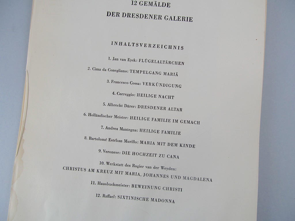 Привіт, пані та панове...... предметом продажу є набір із 12 репродукцій картин, знайдених у музеях Дрездена та пов’язаних із життям Марії... Набір був виданий у відомих друкарнях Лейпцига бл. 1940/50 ......дуже товстий папір екрю та красиві, інтенсивні кольори........дуже висока якість друку, якою Лейпциг був відомий з 19 століття...... репродукції мають розмір 29,5 х 40 см і знаходяться у відмінному стані, деякі з них мають мінімальні сліди використання по кутах або краях, але вони зовсім не дискваліфікують їх...... всі вони придатні для обрамлення! ... гарний комплект і справжня окраса будь-якого стильного інтер'єру ДУЖЕ РЕКОМЕНДУЄМО!!!!