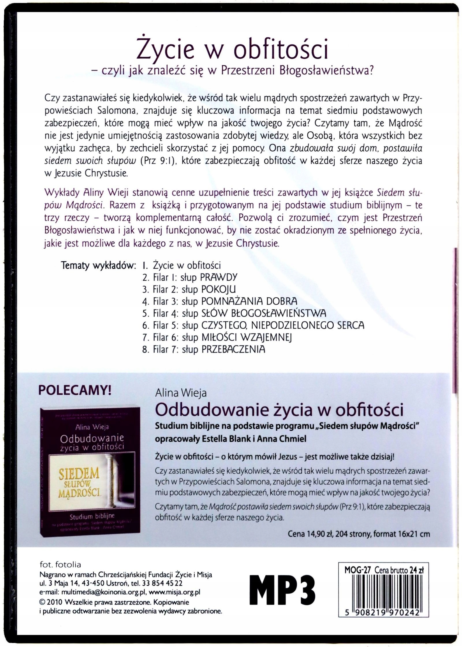 Лекції Аліни Віджі є цінним доповненням до змісту її книги «Сім стовпів мудрості». Разом із книгою та підготовленим на її основі вивченням Біблії ці три речі утворюють одне ціле, що доповнює одне одного. Вони дозволять вам зрозуміти, що таке Простір Благословення і як у ньому функціонувати, щоб не бути вкраденим сповненого життя, яке можливе для кожного з нас в Ісусі Христі.