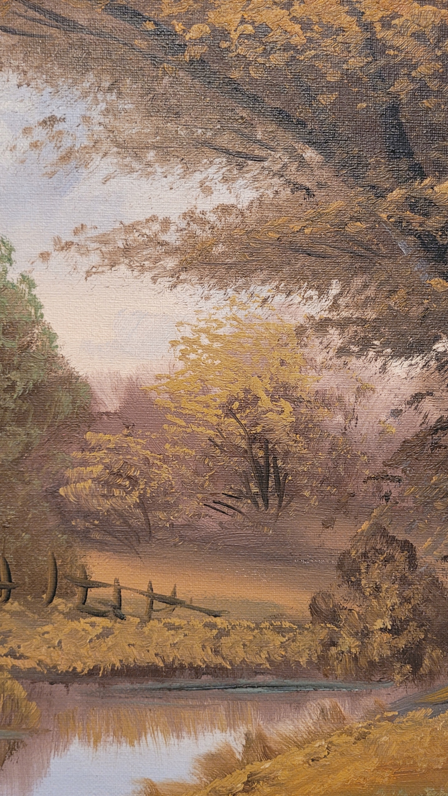 Продається красива старовинна картина олійними фарбами «МІСТЕ В ЛІСІ».
