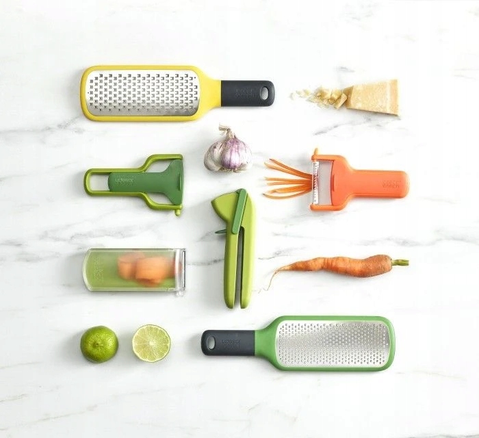 Julienne Peeler для фруктів та овочів Джозефа Джозефа. Він має дуже зручну, приємну до сенсорної ручки, виготовленої з пластику, а лопатки, виготовлені з нержавіючої сталі, стійкої до органічних кислот. Оснащений вкладкою для видалення швів. Завдяки матеріалам, з яких він виготовлений, він буде служити протягом багатьох років, виглядати новим довгий час. Це чудово працює вдома, а також у закладах громадського харчування. Викладачка в ящику буде легко видно, що він буде легко видно. Лезо має інтегровану, розсувну обкладинку, завдяки якому він не винищує в ящику. Фрукти