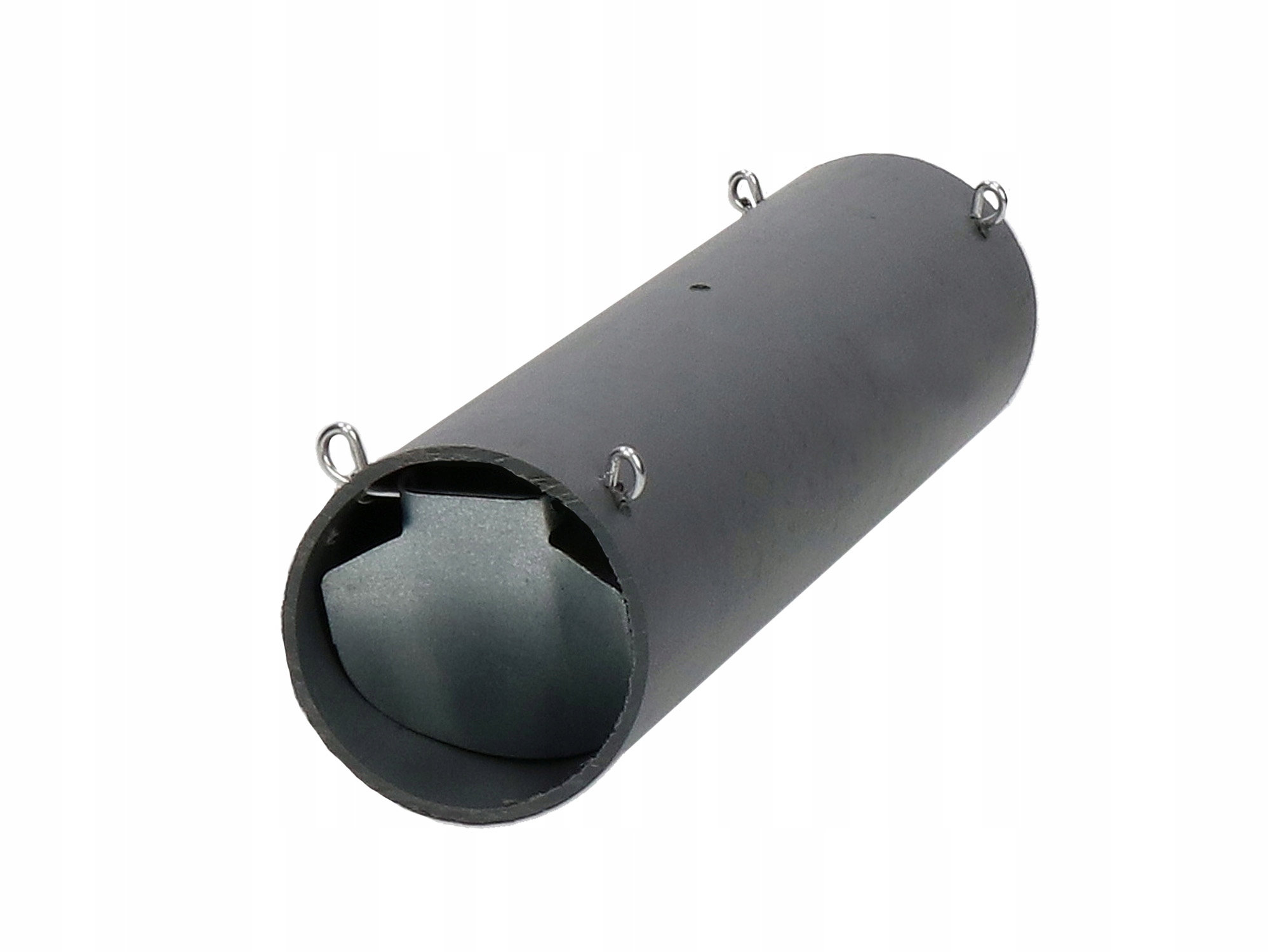 Пастка виготовлена з ПВХ труби з засувками, встановленими з двох сторін. Пастку слід розмістити в коридорі, яким кріт пересувається під землею.