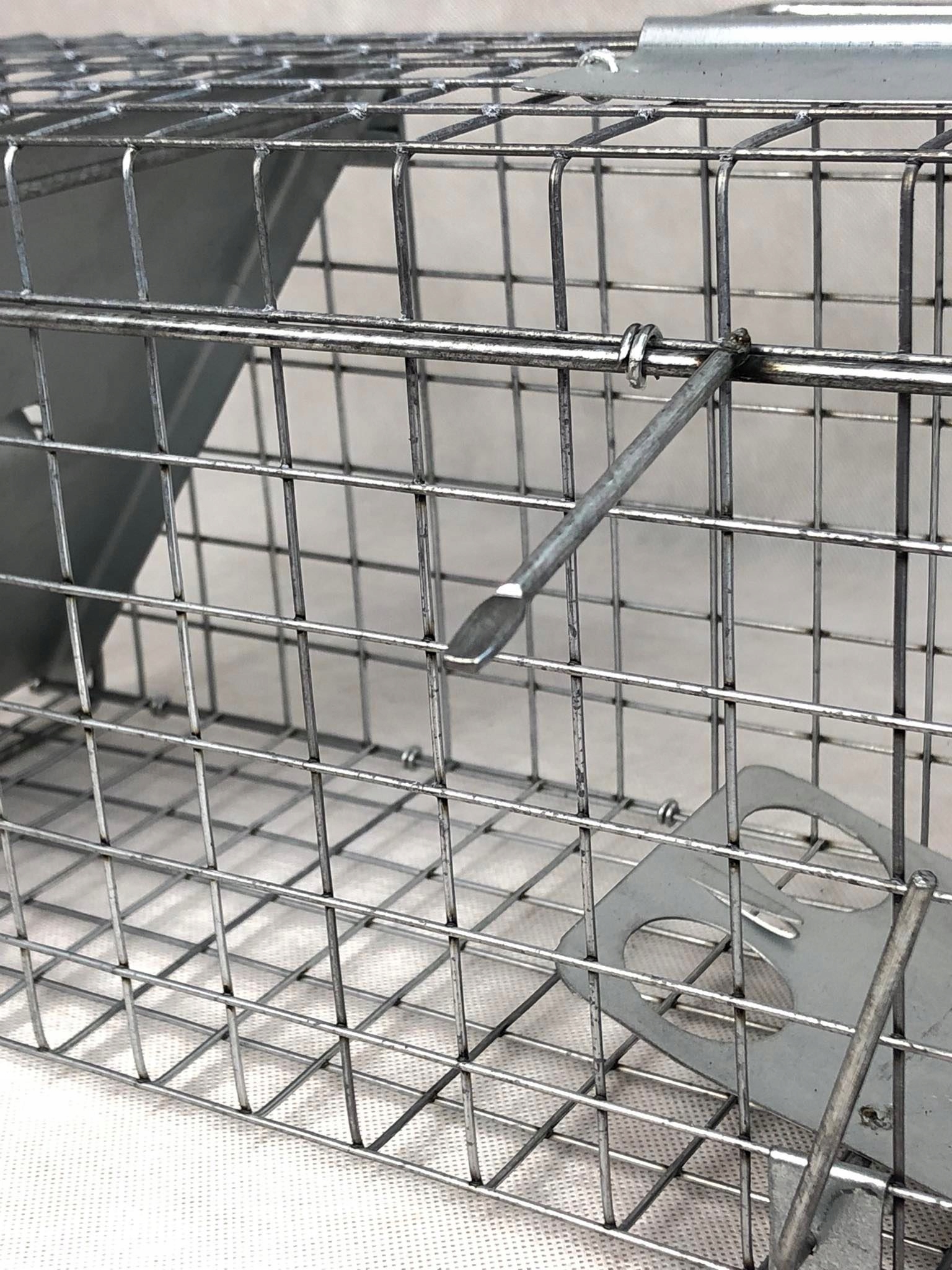 Пастка має два входи. Він оцинкований, захищений від шкідливих погодних умов. Завдяки цьому він не буде подряпаний і точно не іржавіє на повітрі, дощі чи снігу.