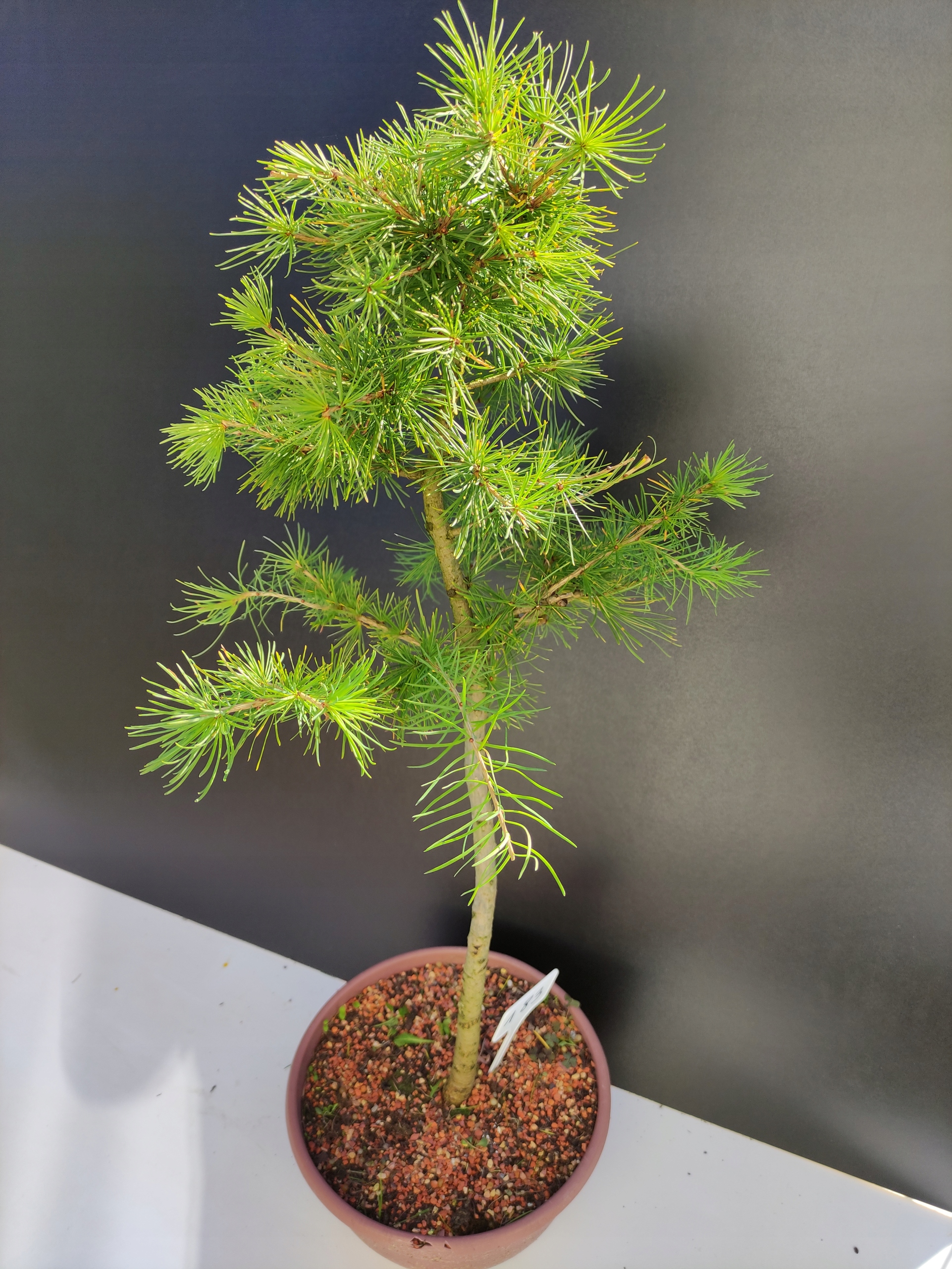 Кожне з наших дерев бонсай є унікальним екземпляром, тому кожне виставлено окремо, оскільки ми ставимося до кожного окремо - від формування до догляду. Ці модрини в наших руках з 2021 року, їм наразі 10 років, тому вони виглядають виключно дорослими та стабільними.
