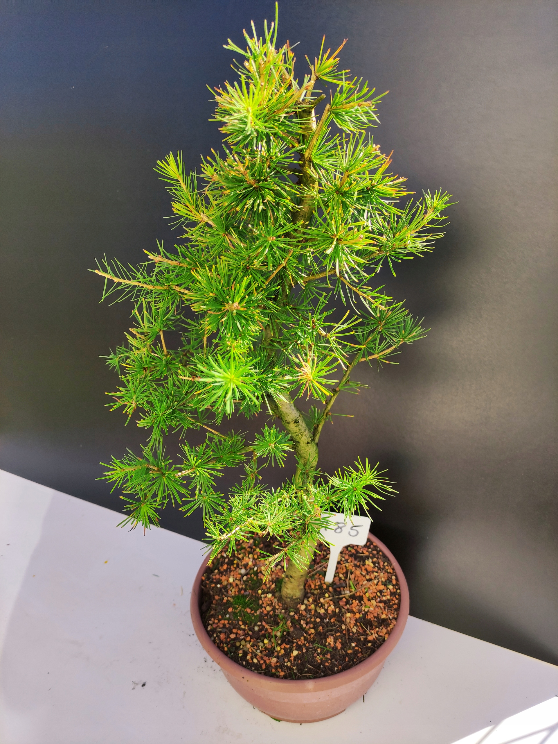 Кожне з наших дерев бонсай є унікальним екземпляром, тому кожне виставлено окремо, оскільки ми ставимося до кожного окремо - від формування до догляду. Ці модрини в наших руках з 2021 року, їм наразі 10 років, тому вони виглядають виключно дорослими та стабільними.
