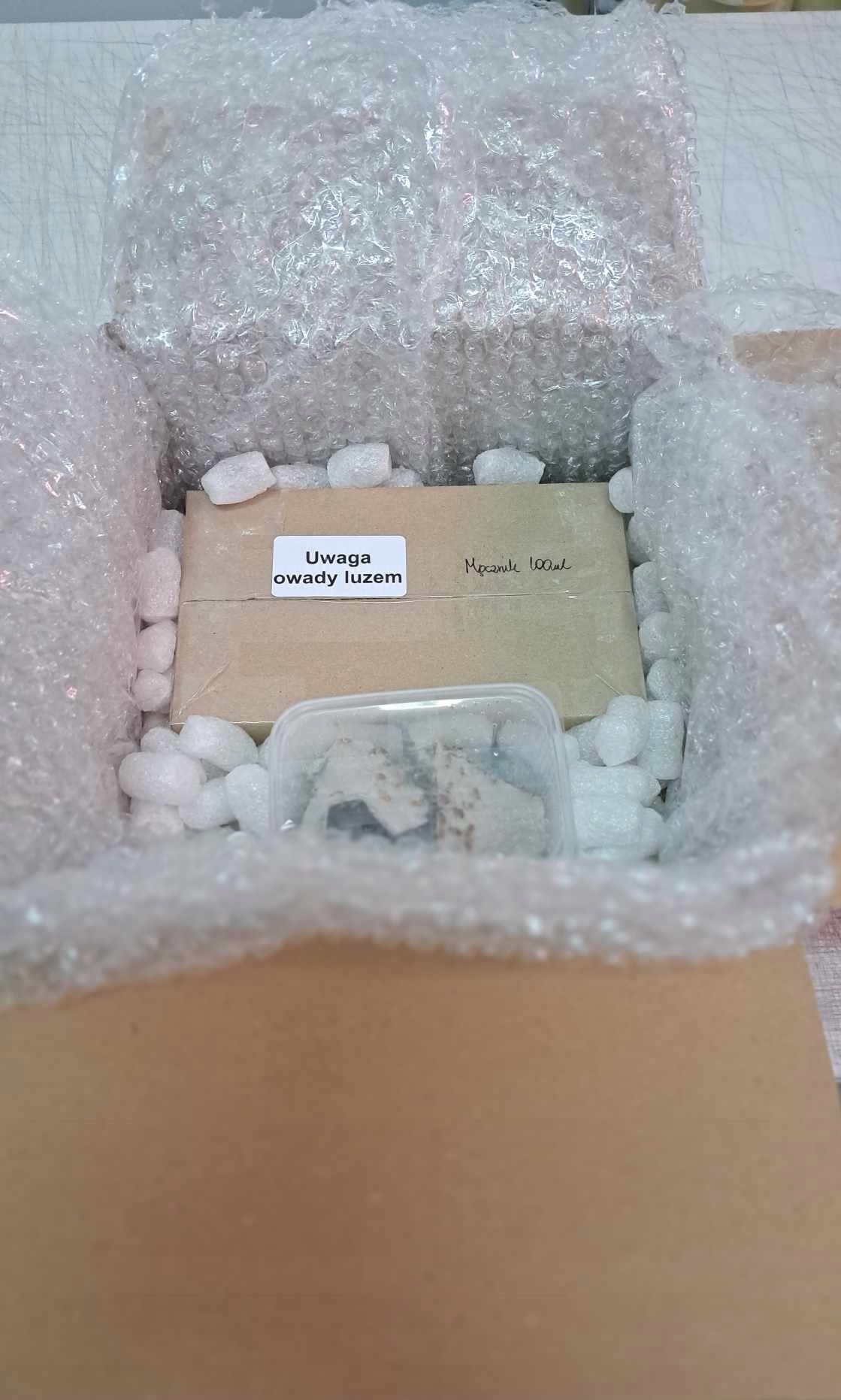 Комахи упаковуються в маленьку коробку, яка закріплюється та поміщається у більшу коробку. Рекомендується відкрити другий ящик над контейнером.