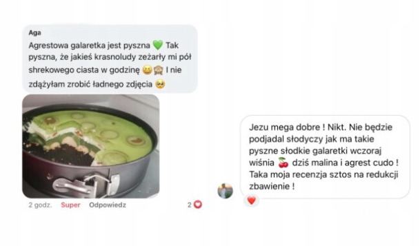 Желе Fajna — це продукт без додавання цукру, який ідеально підходить кожному шанувальнику фруктових десертів! Желе має інтенсивний смак аґрусу, а готується швидко та легко. Він забезпечує лише 19 ккал в одній порції, тому він також ідеально підходить для розвантажувальної дієти. Для приготування желе потрібен лише окріп і глибокий посуд - нам подобаються практичні рішення :) Наше Cool Jelly задовольнить бажання солодкого та урізноманітнить ваш раціон. FITREC Cool Gooseberry Jelly - перше желе з агрусу без цукру! Cool Jelly не містить цукру та штучних барвників - підходить як дорослим, так і дітям.