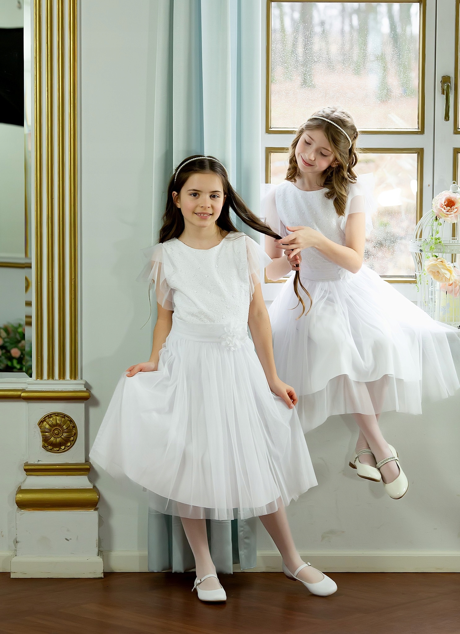 JLB Біле плаття для причастя, фатин, розмір 140