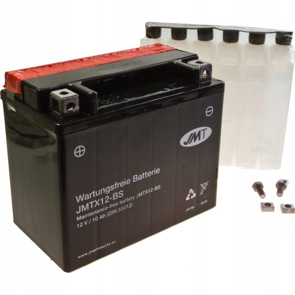 Акумулятор, що постачається з електролітним бака. Він не був активований, і після затоплення його електролітом слід додати відповідно до показань, описаних нижче. За останні кілька років акумулятори JMT повністю змінили обличчя. Завдяки використанню повністю автоматизованої виробничої лінії, в даний час виробляються акумулятори JMT, представляють найвищий глобальний технологічний рівень. Відносно низька ціна означає, що акумулятори JMT є найкращим рішенням на ринку мотоциклістів. Рівень заряду можна перевірити альтернативно за допомогою метра напруги. Якщо це 6,1 В (6 В акумулятор) або 12,2 В (12 В акумулятор), акумулятор повинен бути наповнений рівним або менше 1/10 ємності акумулятора. Приклад: акумулятор 8AH повинен бути заряджений значенням 0,8 a.
