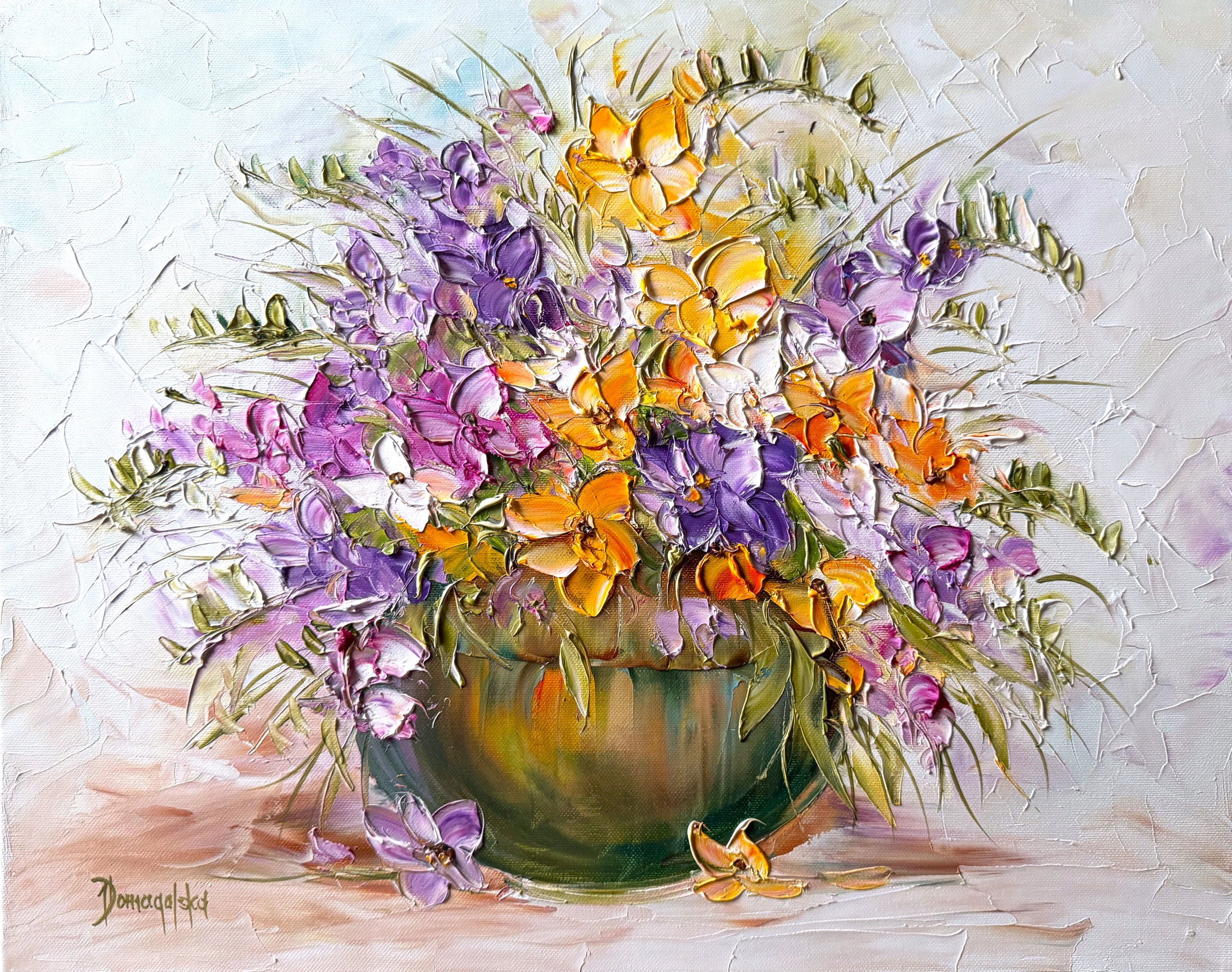 JOANNA ВИМОГЛИВА КАРТИНА ОЛІЙНІ КВІТИ ФРЕЗІЇ 40Х50