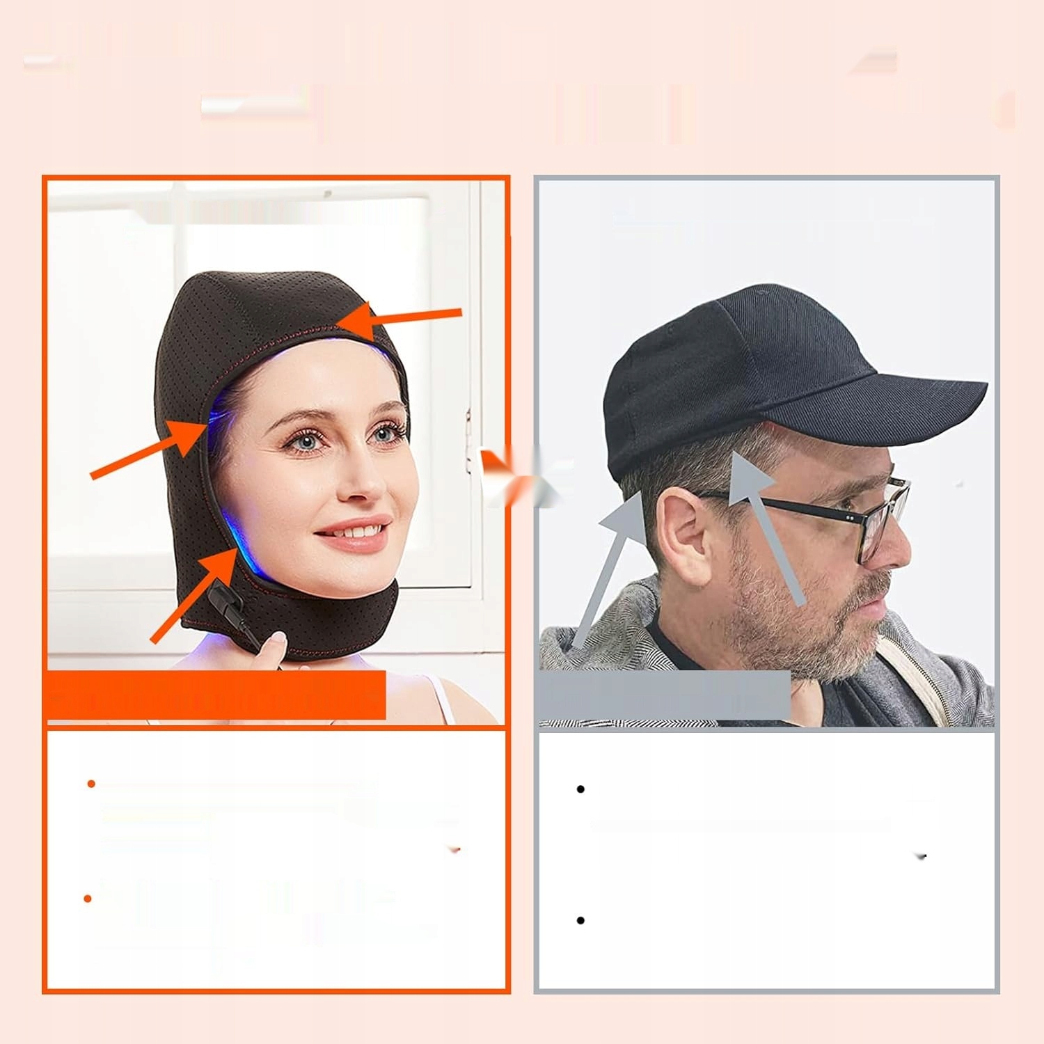 ✅ Синє світло 460 нм, червоне світло 660 нм і інфрачервоне світло 850 нм: зі 144 потужними діодами, включаючи 144 діоди 460 нм, 144 діоди 660 нм і 144 діоди 850 нм. Ефективно пригнічує випадання волосся та контролює запалення шкіри голови, зменшує жирність шкіри голови, покращує атрофію волосяних фолікулів і відіграє допоміжну роль у лікуванні симптомів випадіння волосся.