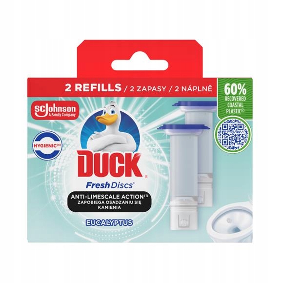 дует з качки Fresh Disc Eukaliptus-це інноваційне рішення, яке забезпечує тривалу свіжість у туалеті, при цьому ефективно нейтралізуючи неприємні запахи.
