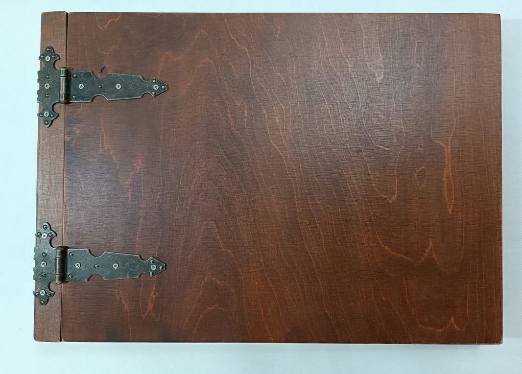 ОБКЛАДИНКА : фанера товщиною 0,6см, колір дуб, петлі металеві.